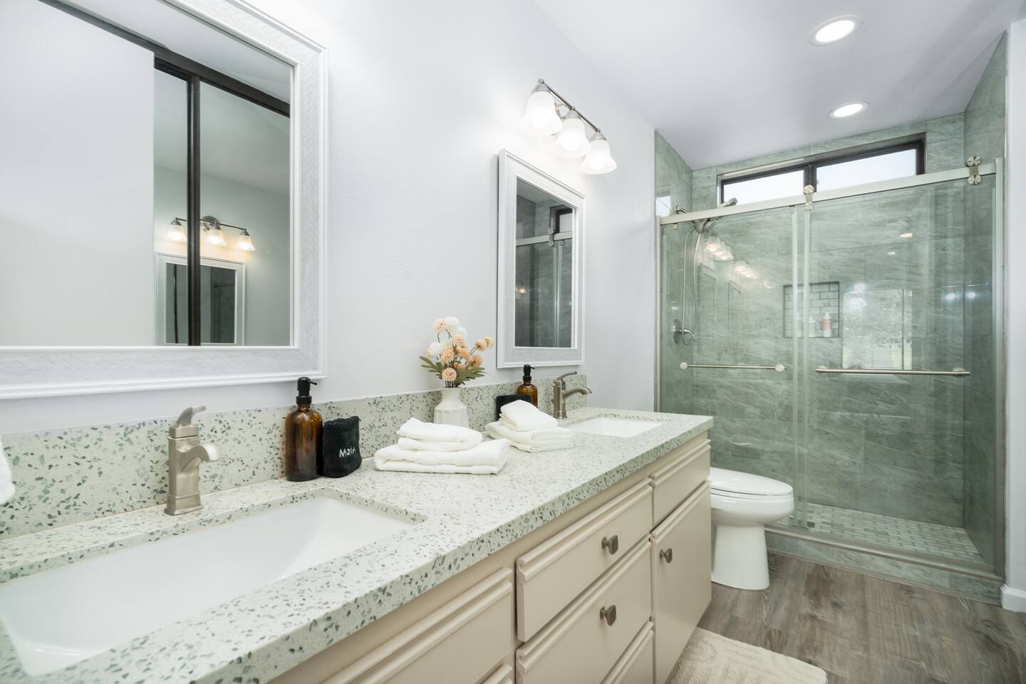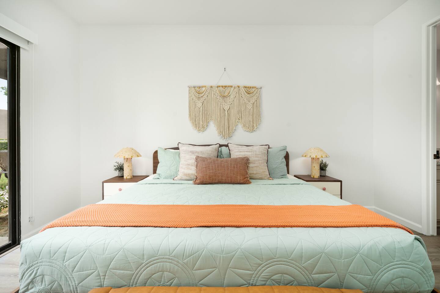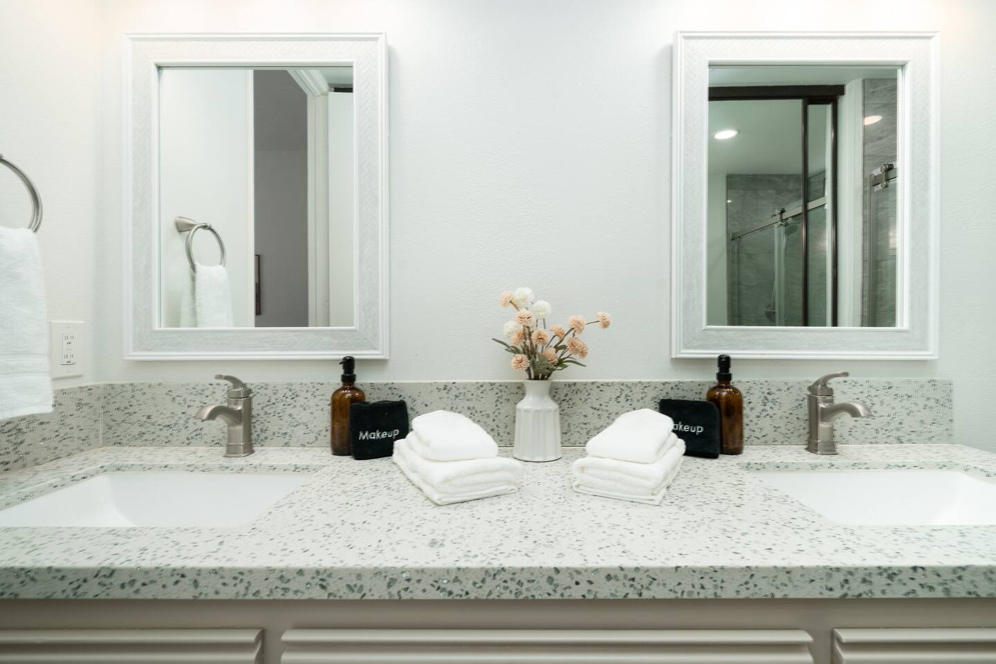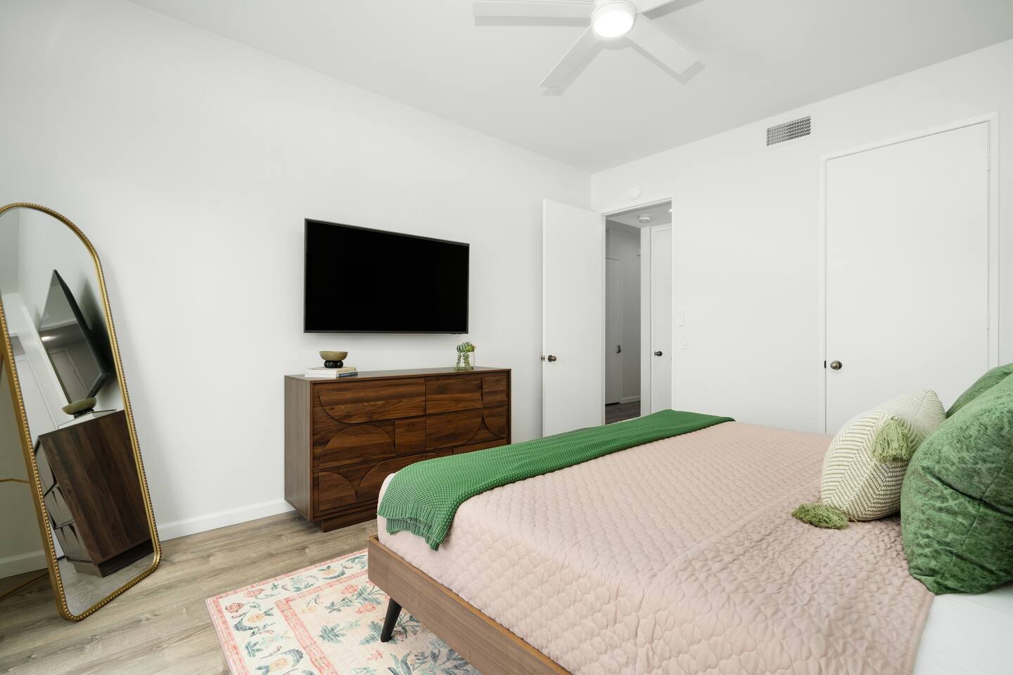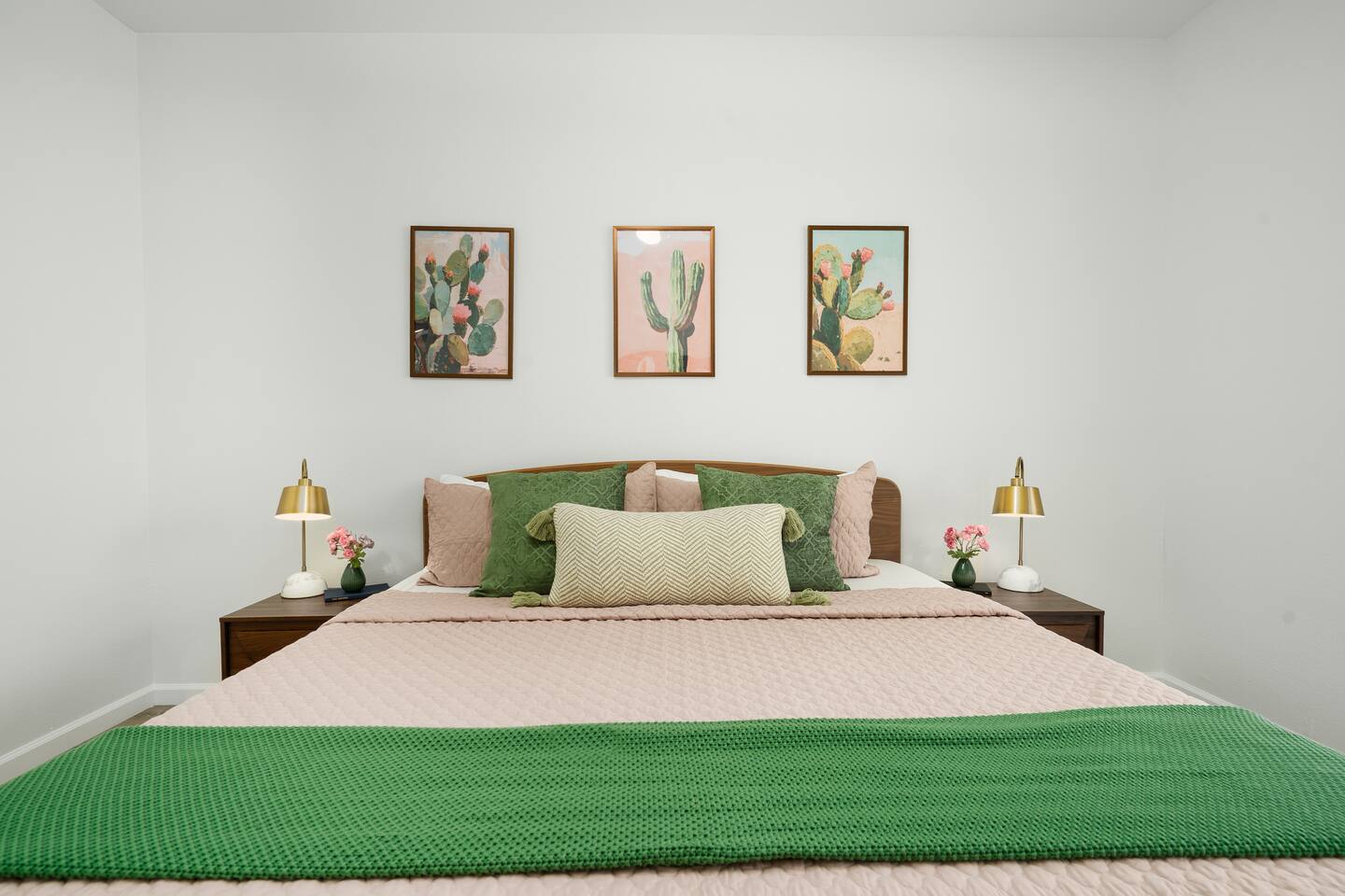 --- INTERIOR DETAILS --- This condo accommodates up to 4 guests with 2 dual primary bedrooms & 2 full ensuite bath\Additional spaces include a fully stocked kitchen, dining space, living room, garage and laundry space. BEDROOMS: ●Bedroom #1 in pictures: King bed with ensuite bath, nightstands, table lamps, dresser, smart tv, walk-in closet, luggage rack, ceiling fan, private access sliding door to the back patio. ●Bedroom #2 in pictures :King bed with ensuite bath, nightstands, table lamps, working desk, closet, luggage rack, ceiling fan, private access sliding door to back patio. ●Bathroom #1: Standing shower, dual vanity, hairdryer, makeup towels ●Bathroom #2: Standing shower, dual vanity, makeup towels --- EXTERIOR DETAILS --- ●Pool & Spa: Community pool and & Spa are a short 2 minute walk when you exit left from the front of the property ●Patio: Lounge seating, outdoor dining for 4, Gas BBQ ●Private Garage with access for 1 vehicle, garage remote provided ---LOCATION--- The condo is located on Isleta Ct which is the best street in the Desert Princess community. It’s a private dead end street away from the busy roads and close to community amenities. Guests are approximately one block from the newly renovated gym, spa, tennis centre, pickleball courts, full size driving range, renovated clubhouse and EV charger parking spots. Guests get a discount at the award winning golf course. (Rated among the best in the valley by golf digest). Tennis, pickle ball and golf clinics available. ---COMMUNITY--- Desert Princess country club and resort is a gated community built around a 27 hole Championship PGA golf course. The Resort boasts 34 community pools and is Ideally located just 10 minutes to the airport and 15 minutes to downtown Palm Springs.