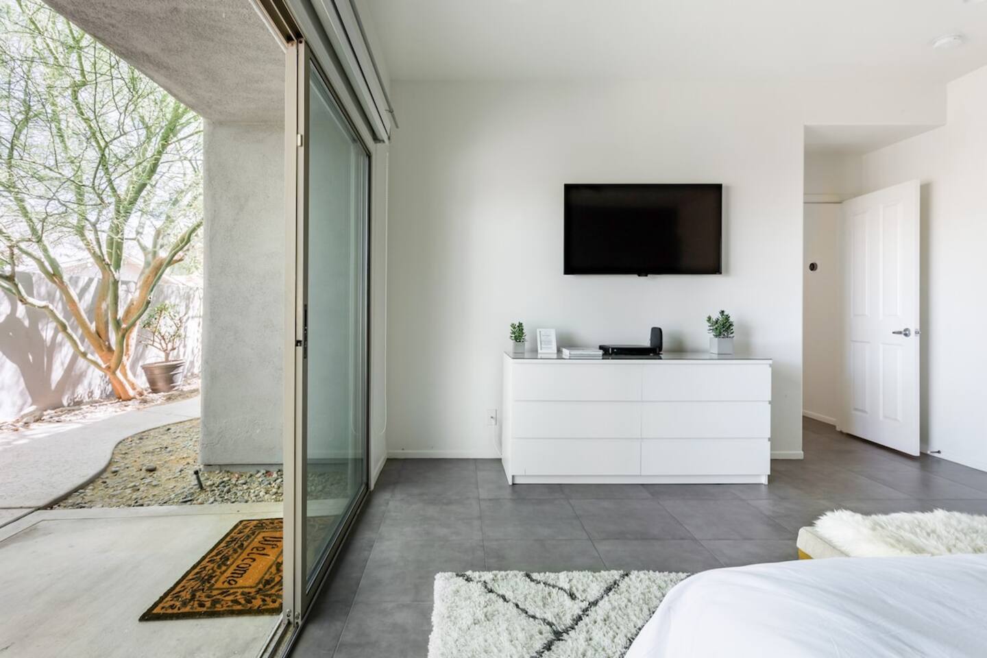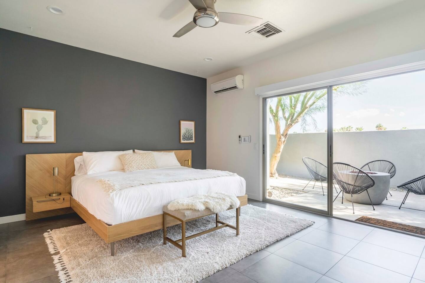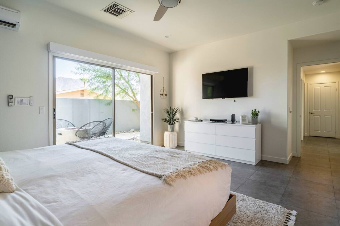 Steps away from hiking trails, charming Old Town, and a short drive to the Empire Polo Field. Modern pool home in the beautiful La Quinta Cove with all brand new furnishings in a minimalistic and desert chic style. The Grey House features 3 bedrooms, 2 bathrooms, and an open floor plan in the living, dining and kitchen areas. Relax in the stunning front courtyard featuring a sparkling pool with lush landscaping and sweeping mountain views, or enjoy sipping on wine in the backyard around the fire pit. This home is guaranteed to give you the relaxing and stress free vacation you deserve and need. ACCOMMODATIONS: Sleeps 6. Master Bedroom: King Size bed, Smart TV with cable, walk in closet, ensuite bathroom with full bath. 2 twin memory foam roll away beds are available to use as well. Guest Bedroom 1: Queen bed and walk in closet. Smart TV. Pack n' play available in closet if needed for the little ones. Guest Bedroom 2: Queen bed. Smart TV and dresser. Living Room: All brand new modern furnishings, 65” 4K Smart HDTV with cable tv and netflix ready. Kitchen: The kitchen is fully equipped with everything you'll need to enjoy your vacation. Blender, toaster, pots and pans, cutlery and cooking utensils. There are dishes, cups, bowls, glasses and flatware settings for 8+. Stainless steel appliances and dishwasher. Or, enjoy the beautiful patios and use the brand new BBQ outside! Laundry Room: Washer & dryer available for your use Outside: The front courtyard features a beautiful pool with lush landscaping, overlooking the sweeping mountain views. The middle courtyard is perfect for dining al fresco with a patio table and a brand new stainless steel BBQ. The backyard is private and quiet and can be accessed directly from the master suite. Enjoy coffee or a glass of wine around the fire pit. There is also a 2 car garage for your own use. Other Amenities: This home has central air conditioning, heating, a digital Nest thermostat, washer and dryer, free high-speed wireless and of course all linens and pool towels. La Quinta Cove is next to the scenic Waldorf Astoria La Quinta Resort. Also adjacent is charming Old Town with restaurants, a wine bar, and brewery, plus movie theaters. Replenish provisions at nearby shops, and at weekend farmers' markets. DISCLOSURES: The property has one security camera on the front of the garage to monitor the driveway and street of the property for your security and ours. It is not meant to invade your privacy, and the camera does not pick up any footage from the pool area, front yard, inside or back of house.