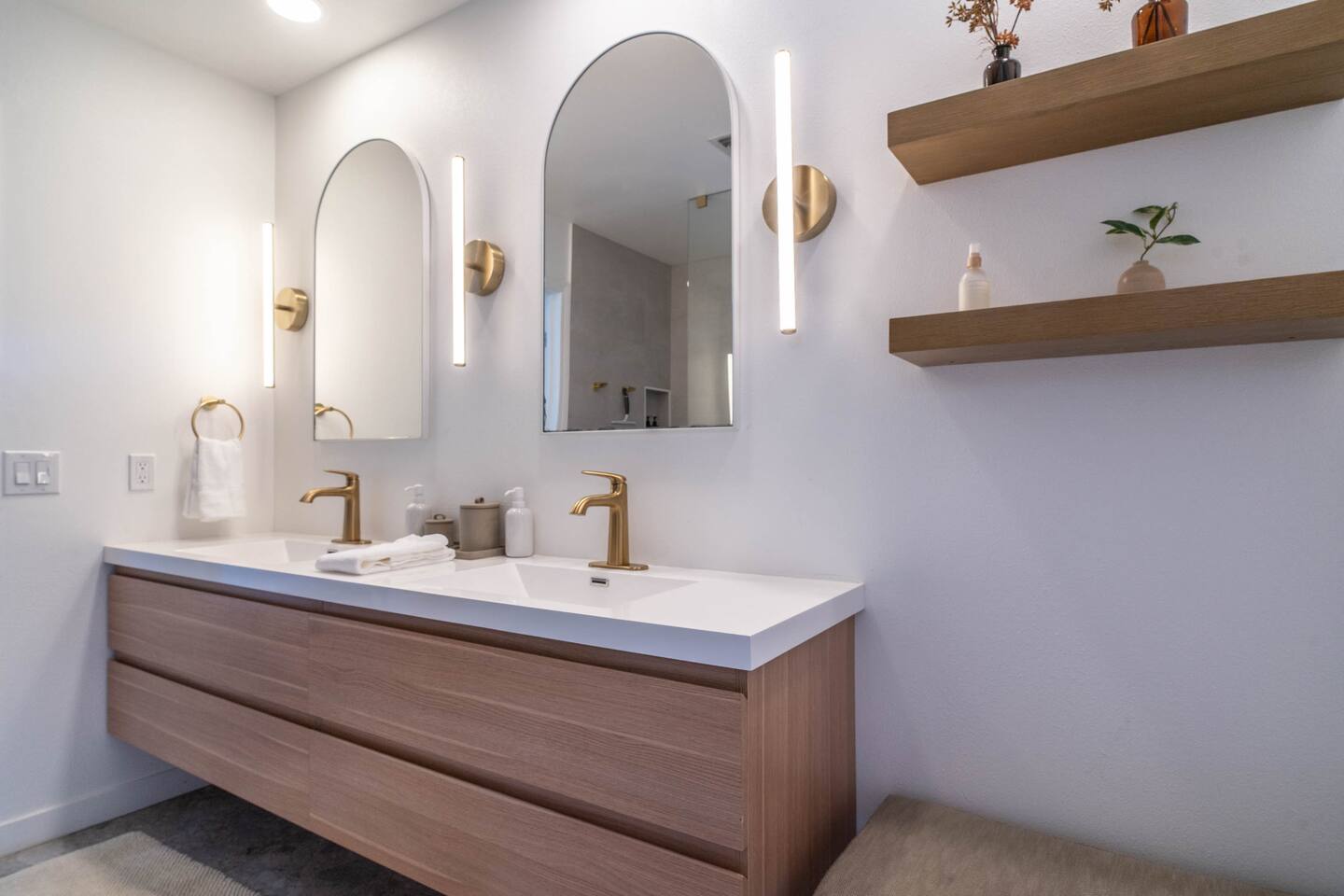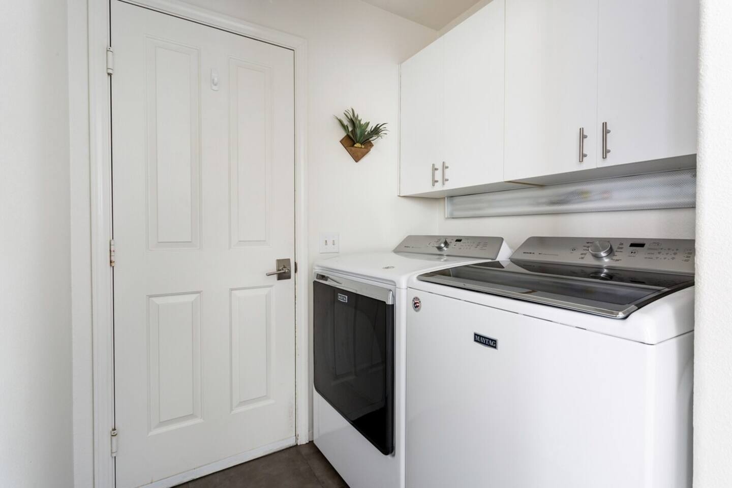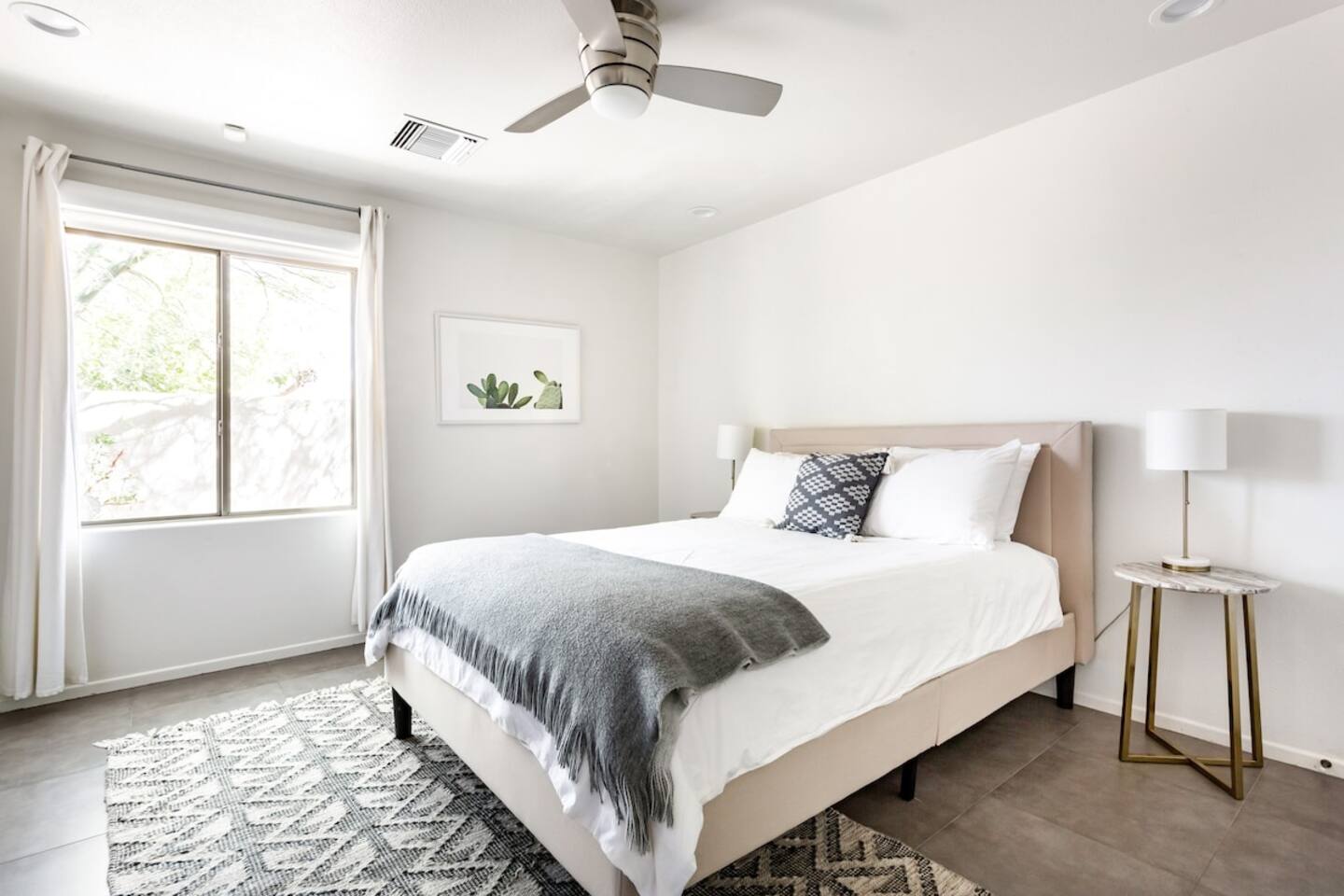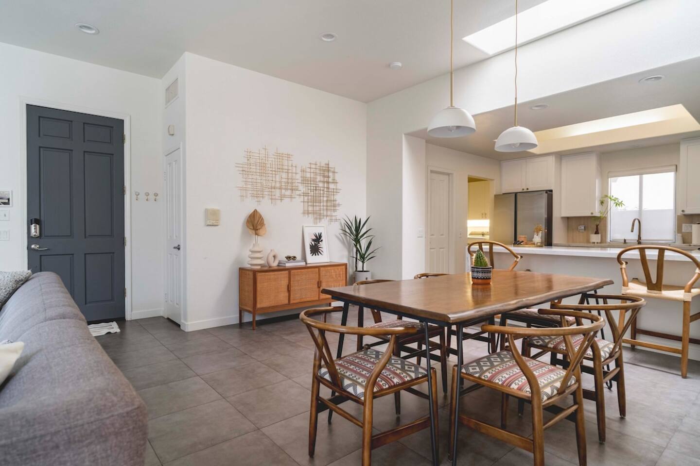 Steps away from hiking trails, charming Old Town, and a short drive to the Empire Polo Field. Modern pool home in the beautiful La Quinta Cove with all brand new furnishings in a minimalistic and desert chic style. The Grey House features 3 bedrooms, 2 bathrooms, and an open floor plan in the living, dining and kitchen areas. Relax in the stunning front courtyard featuring a sparkling pool with lush landscaping and sweeping mountain views, or enjoy sipping on wine in the backyard around the fire pit. This home is guaranteed to give you the relaxing and stress free vacation you deserve and need. ACCOMMODATIONS: Sleeps 6. Master Bedroom: King Size bed, Smart TV with cable, walk in closet, ensuite bathroom with full bath. 2 twin memory foam roll away beds are available to use as well. Guest Bedroom 1: Queen bed and walk in closet. Smart TV. Pack n' play available in closet if needed for the little ones. Guest Bedroom 2: Queen bed. Smart TV and dresser. Living Room: All brand new modern furnishings, 65” 4K Smart HDTV with cable tv and netflix ready. Kitchen: The kitchen is fully equipped with everything you'll need to enjoy your vacation. Blender, toaster, pots and pans, cutlery and cooking utensils. There are dishes, cups, bowls, glasses and flatware settings for 8+. Stainless steel appliances and dishwasher. Or, enjoy the beautiful patios and use the brand new BBQ outside! Laundry Room: Washer & dryer available for your use Outside: The front courtyard features a beautiful pool with lush landscaping, overlooking the sweeping mountain views. The middle courtyard is perfect for dining al fresco with a patio table and a brand new stainless steel BBQ. The backyard is private and quiet and can be accessed directly from the master suite. Enjoy coffee or a glass of wine around the fire pit. There is also a 2 car garage for your own use. Other Amenities: This home has central air conditioning, heating, a digital Nest thermostat, washer and dryer, free high-speed wireless and of course all linens and pool towels. La Quinta Cove is next to the scenic Waldorf Astoria La Quinta Resort. Also adjacent is charming Old Town with restaurants, a wine bar, and brewery, plus movie theaters. Replenish provisions at nearby shops, and at weekend farmers' markets. DISCLOSURES: The property has one security camera on the front of the garage to monitor the driveway and street of the property for your security and ours. It is not meant to invade your privacy, and the camera does not pick up any footage from the pool area, front yard, inside or back of house.