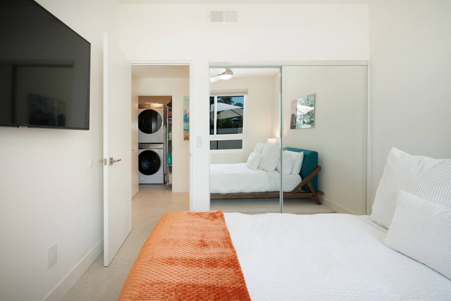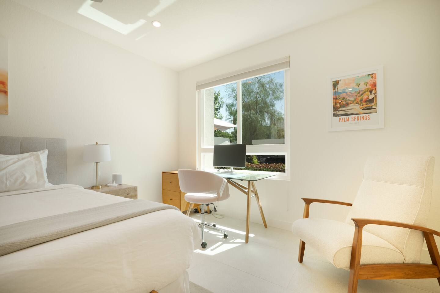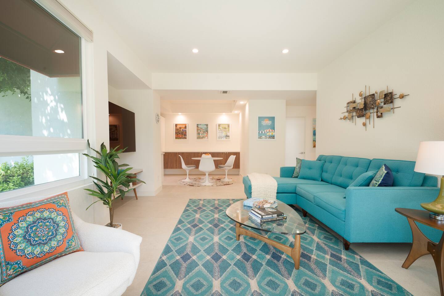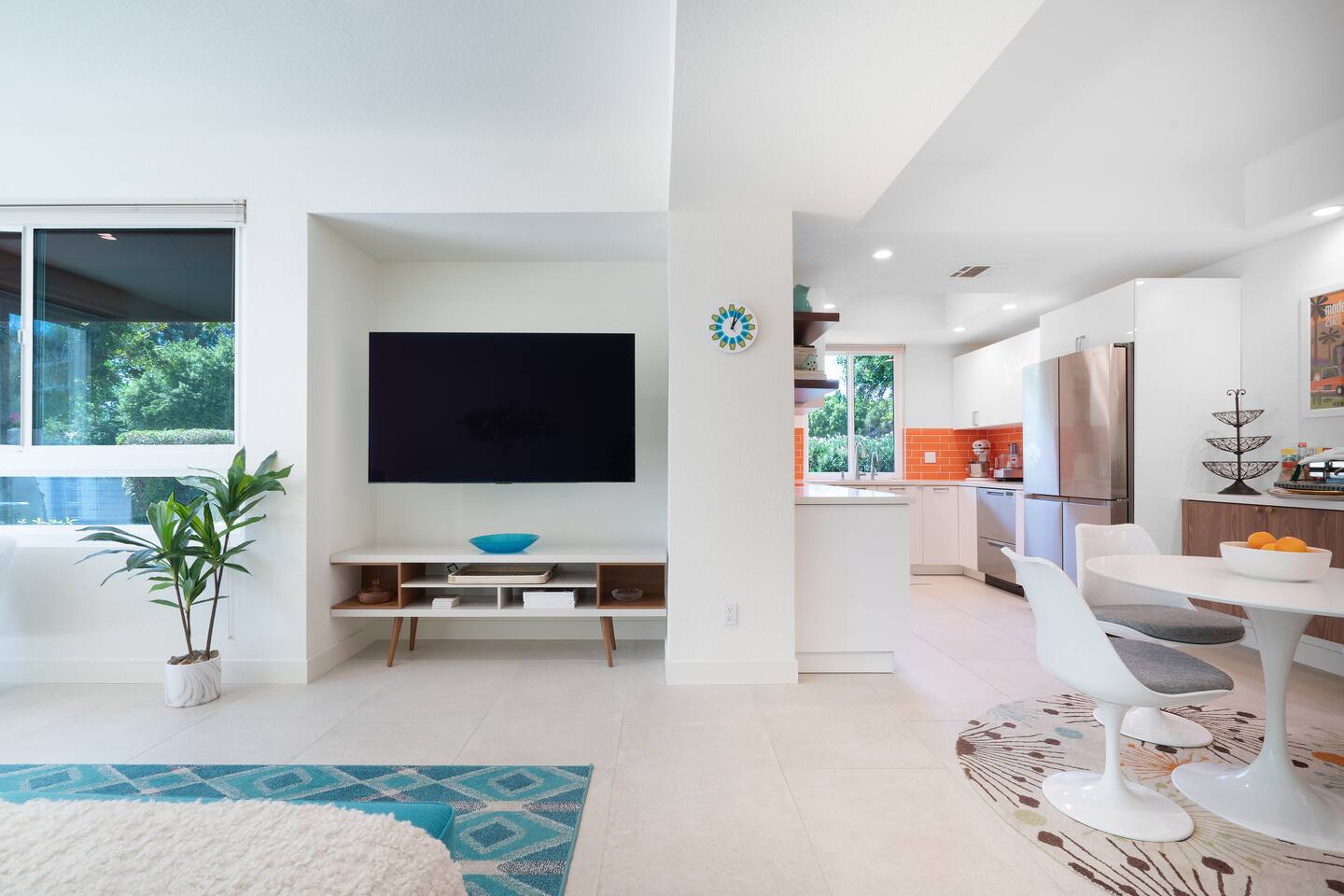 Welcome to your Palm Springs perfect condo! Enjoy a stylish experience at this centrally located condo, which is very convenient to the airport. Just a quick 7-minute drive to downtown Palm Springs, it's in a safe, gated community with shared tennis courts and heated pools/hot tubs. You'll fall in love with the Midcentury design and upgraded finishes throughout the condo. We hope this will be your home away from home for 30-plus-day stays.
