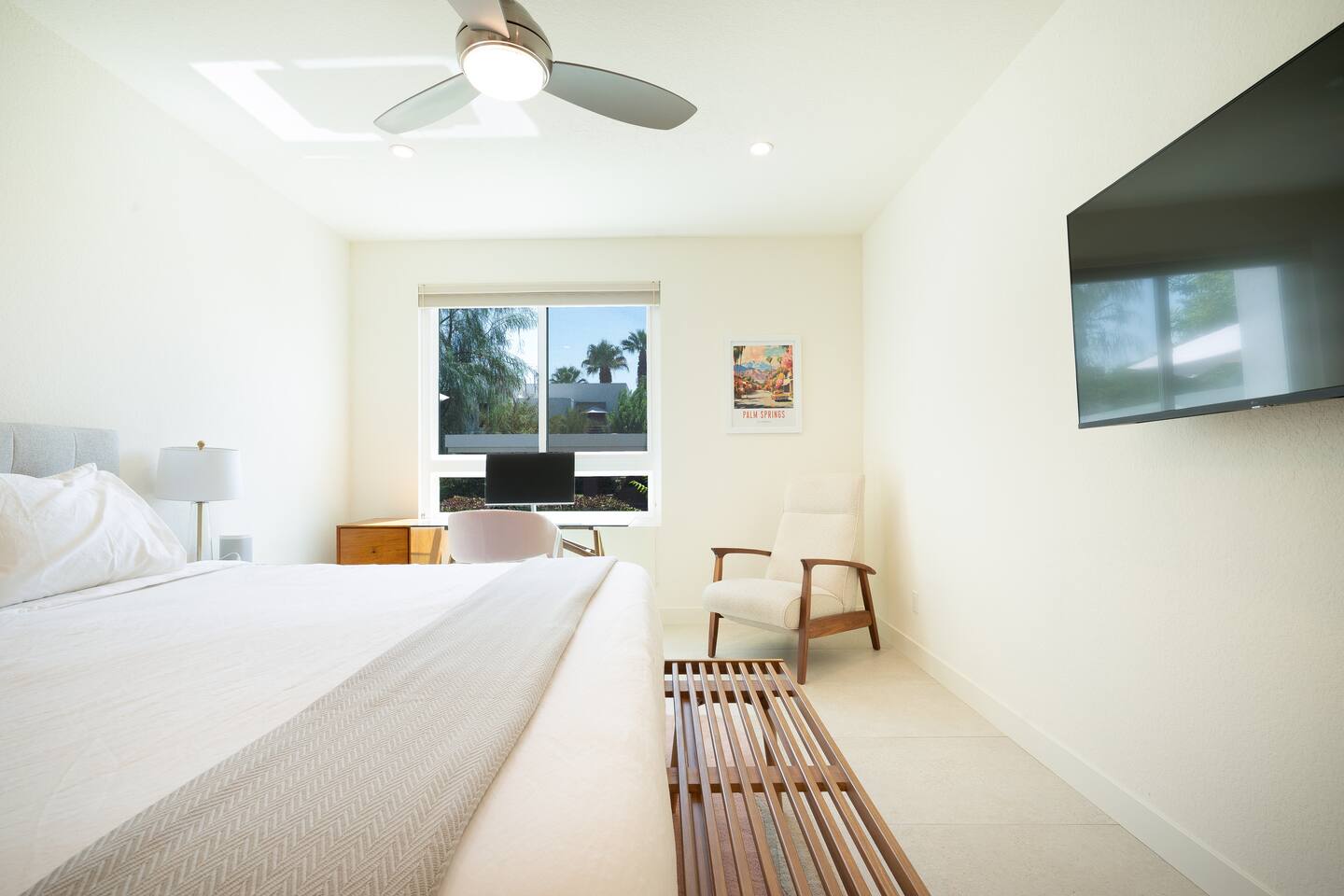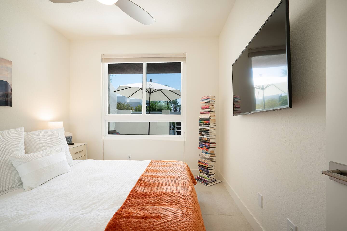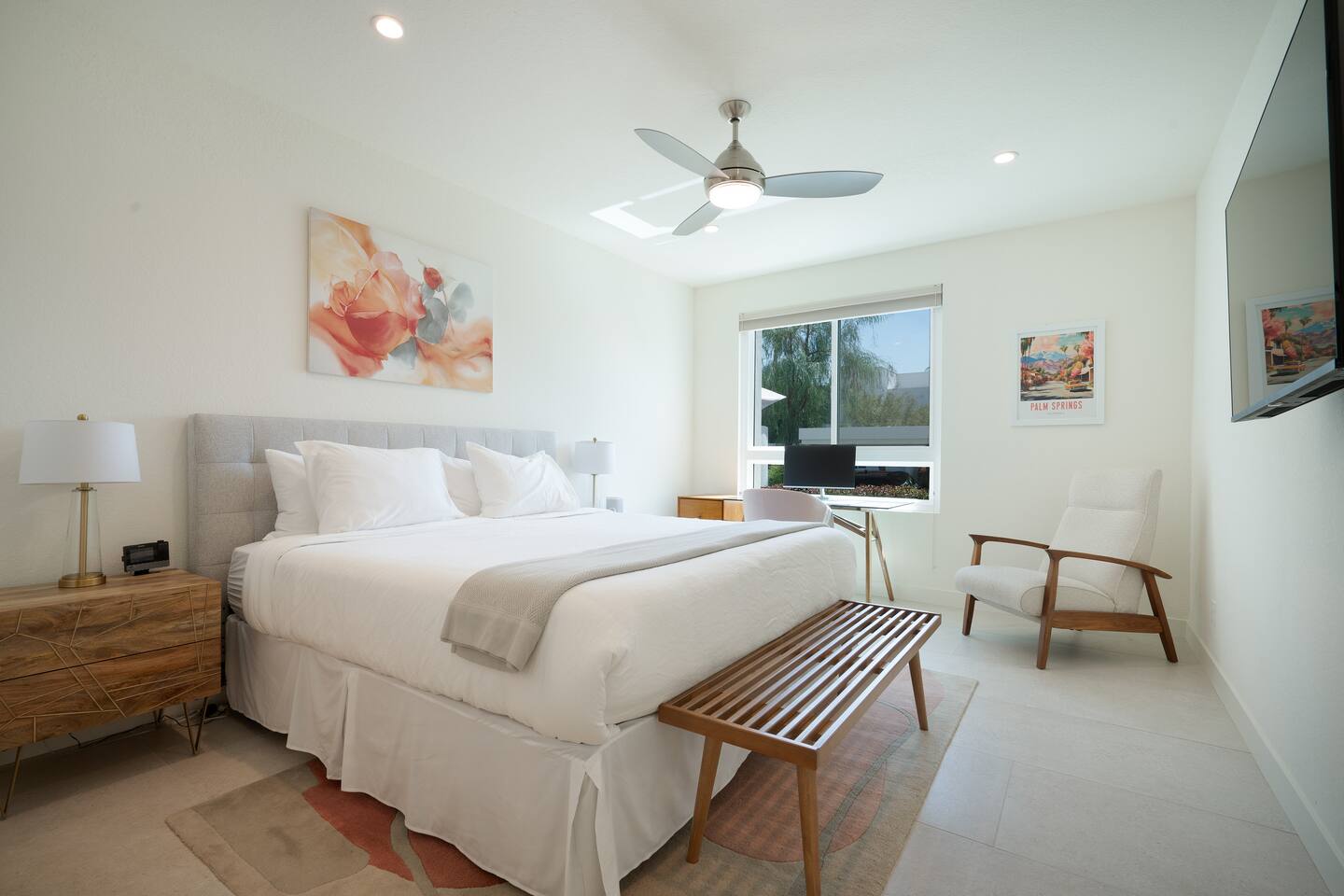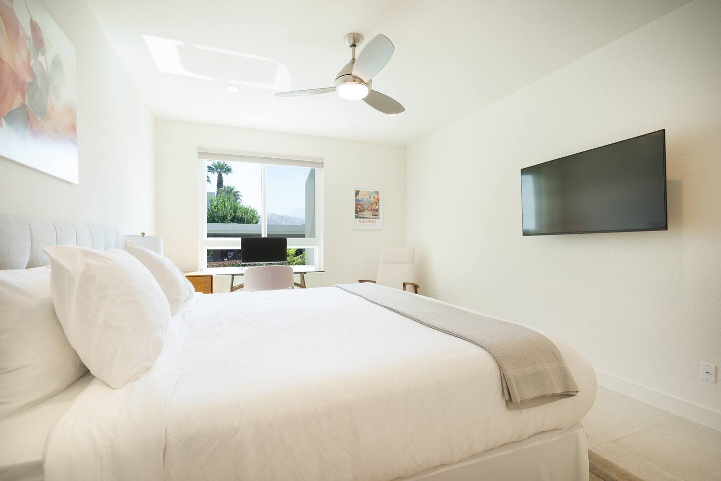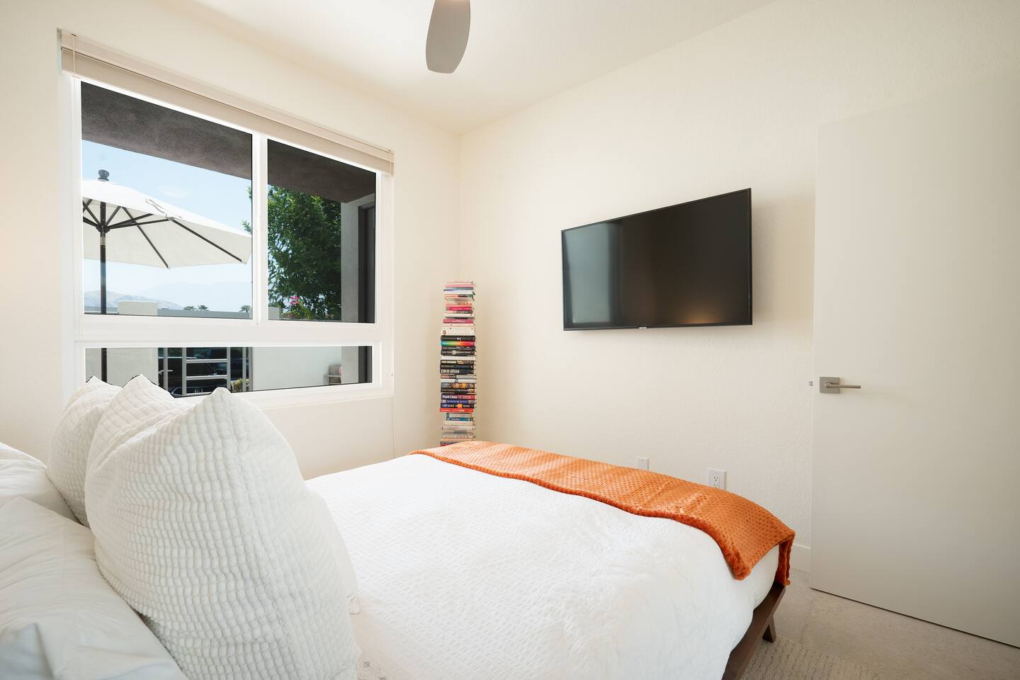 Welcome to your Palm Springs perfect condo! Enjoy a stylish experience at this centrally located condo, which is very convenient to the airport. Just a quick 7-minute drive to downtown Palm Springs, it's in a safe, gated community with shared tennis courts and heated pools/hot tubs. You'll fall in love with the Midcentury design and upgraded finishes throughout the condo. We hope this will be your home away from home for 30-plus-day stays.