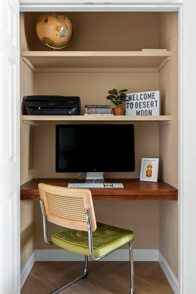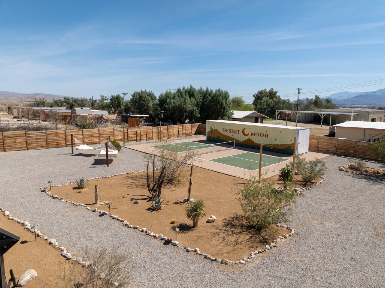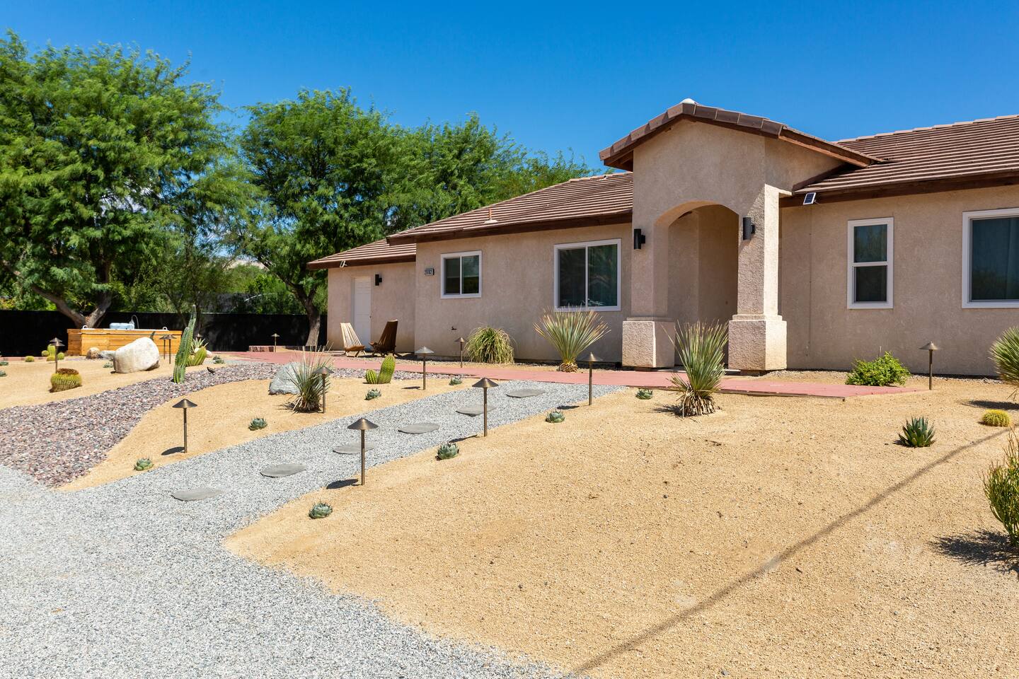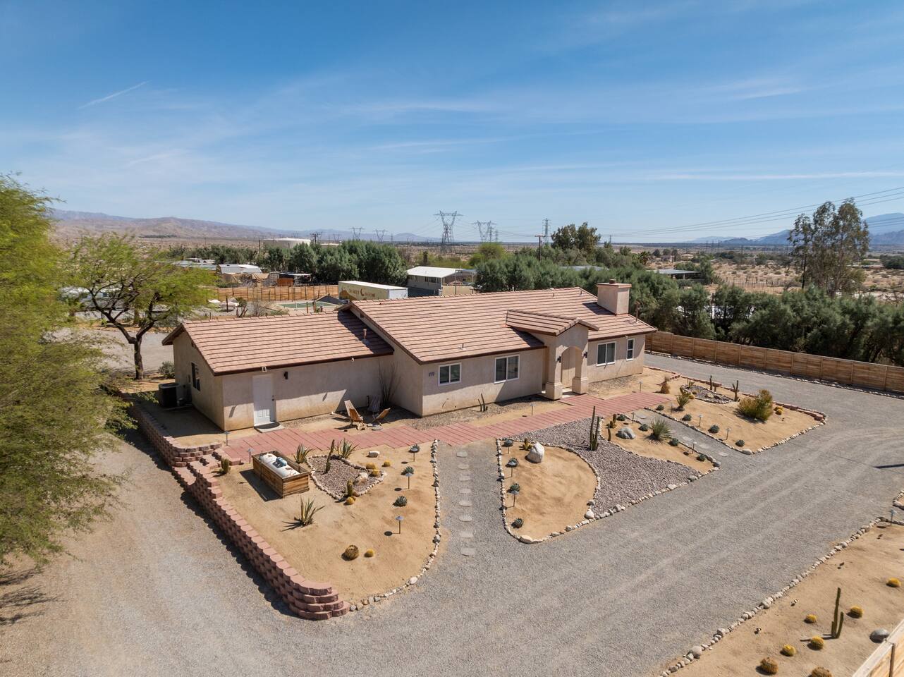 Desert Moon is located in Thousand Palms off Ramon Road, going straight down takes you to Cathedral City and Palm Springs. Just one block away is Monterey ave which connects to Palm Desert and Rancho Mirage . The property sits towards the end of Desert Moon Dr with plenty of privacy and tranquility. While we do have neighbors, they are not close enough to disturb or be disturbed (though we ask that you respect them as if they were right next door). Shopping at Costco, Walmart, Chick-fil-A, Chipotle, In and Out or the Agua Caliente Casino Rancho Mirage are with in 5 minutes away at the I-10 exits. The Thousand Palms Oasis Preserve with 20k acres of desert wilderness and hiking trails is less than 10 minutes away. This home's neighborhood is a hidden gem of the desert.
