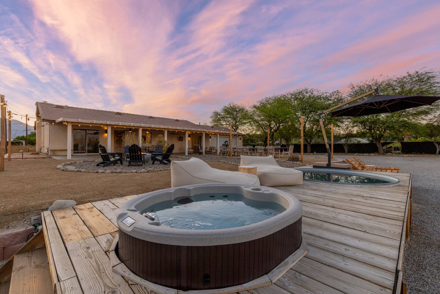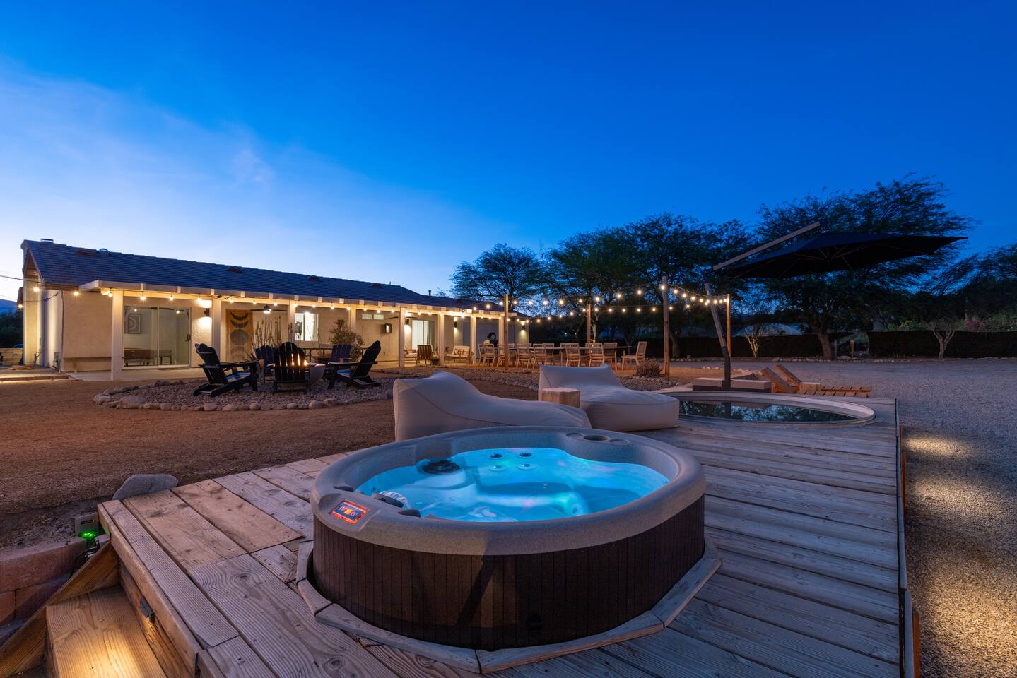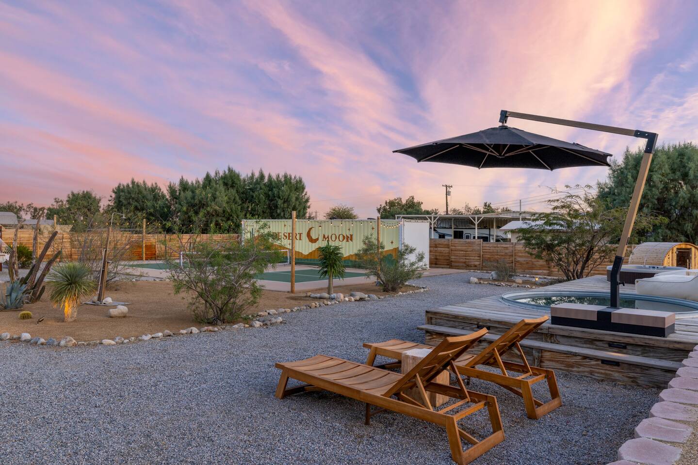 Desert Moon features all the unique amenities made popular in nearby Joshua Tree but within a 10 minute drive to the popular cities of Palm Springs or Palm Desert. Just off the beaten path from the highway, when your group arrives you'll have 1 acre of privacy to experience your desert dreams. Soak in the 10ft cowboy pool or relax in the Hot Tub under the stars. The inside has been designed by an Airbnb Plus team and equipped for comfort. Permit Number: 000942