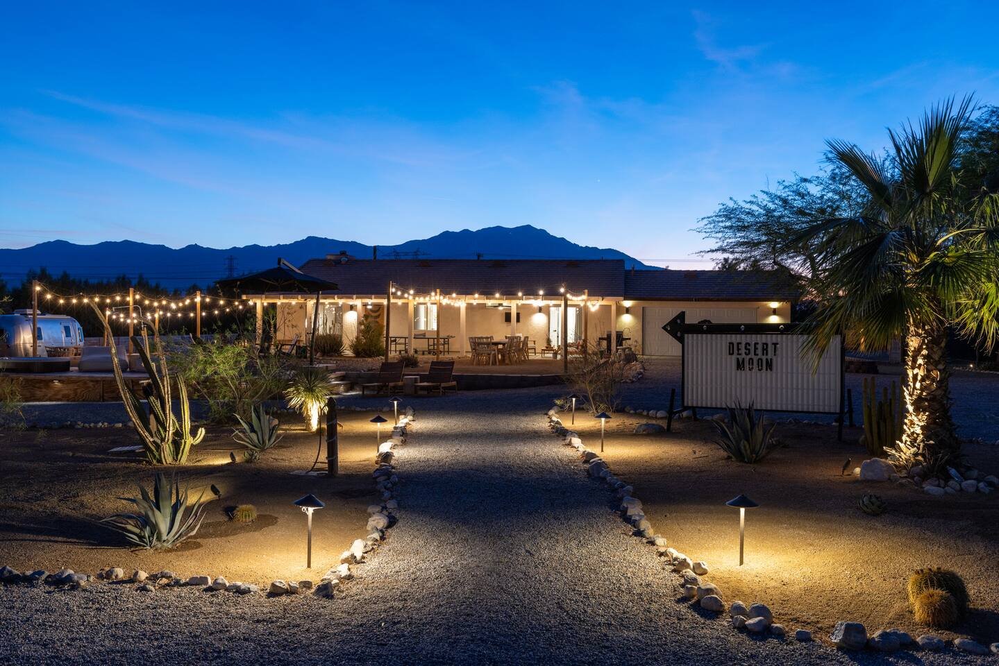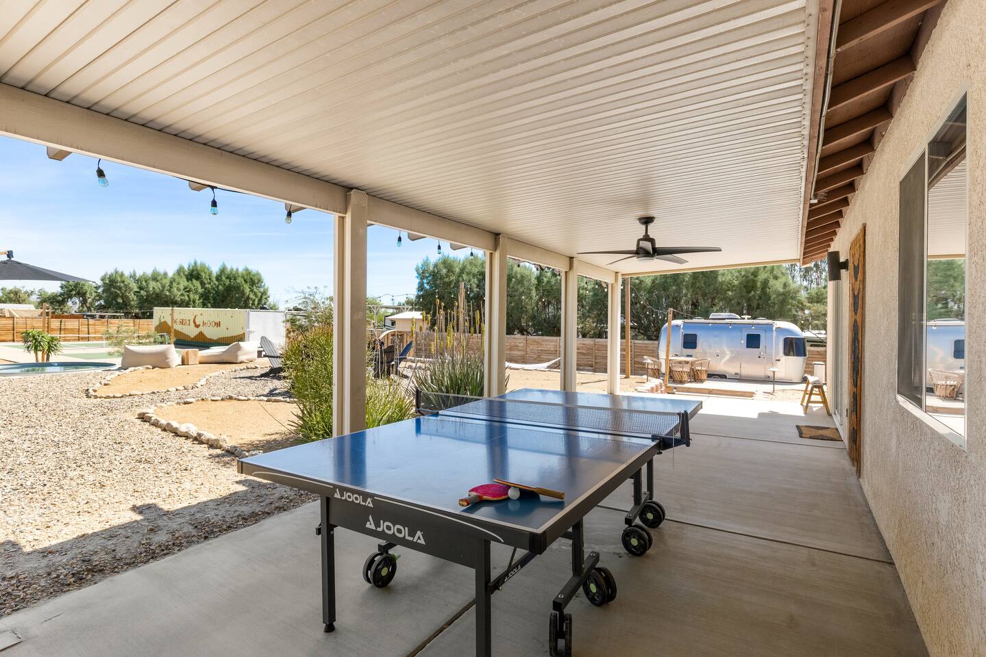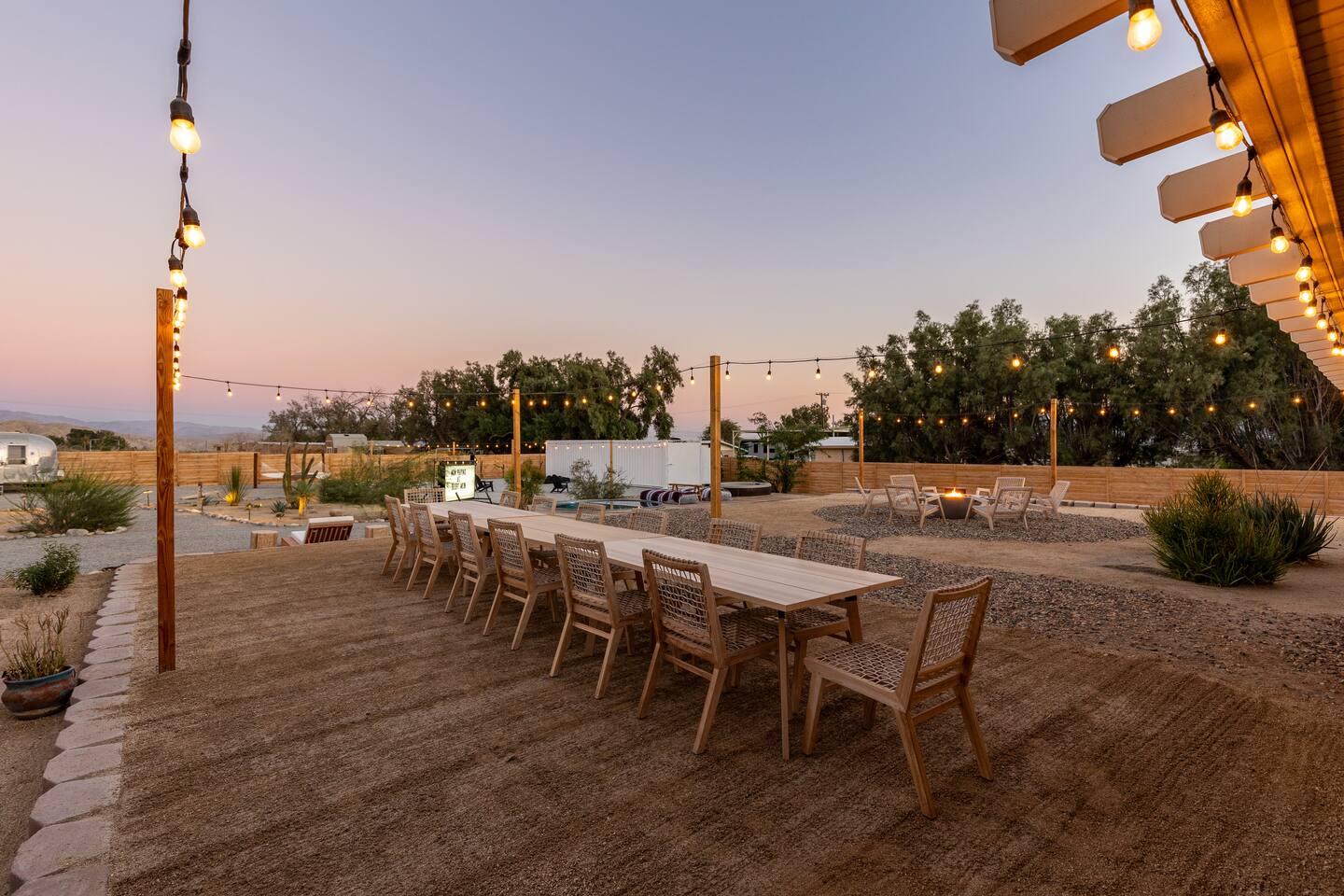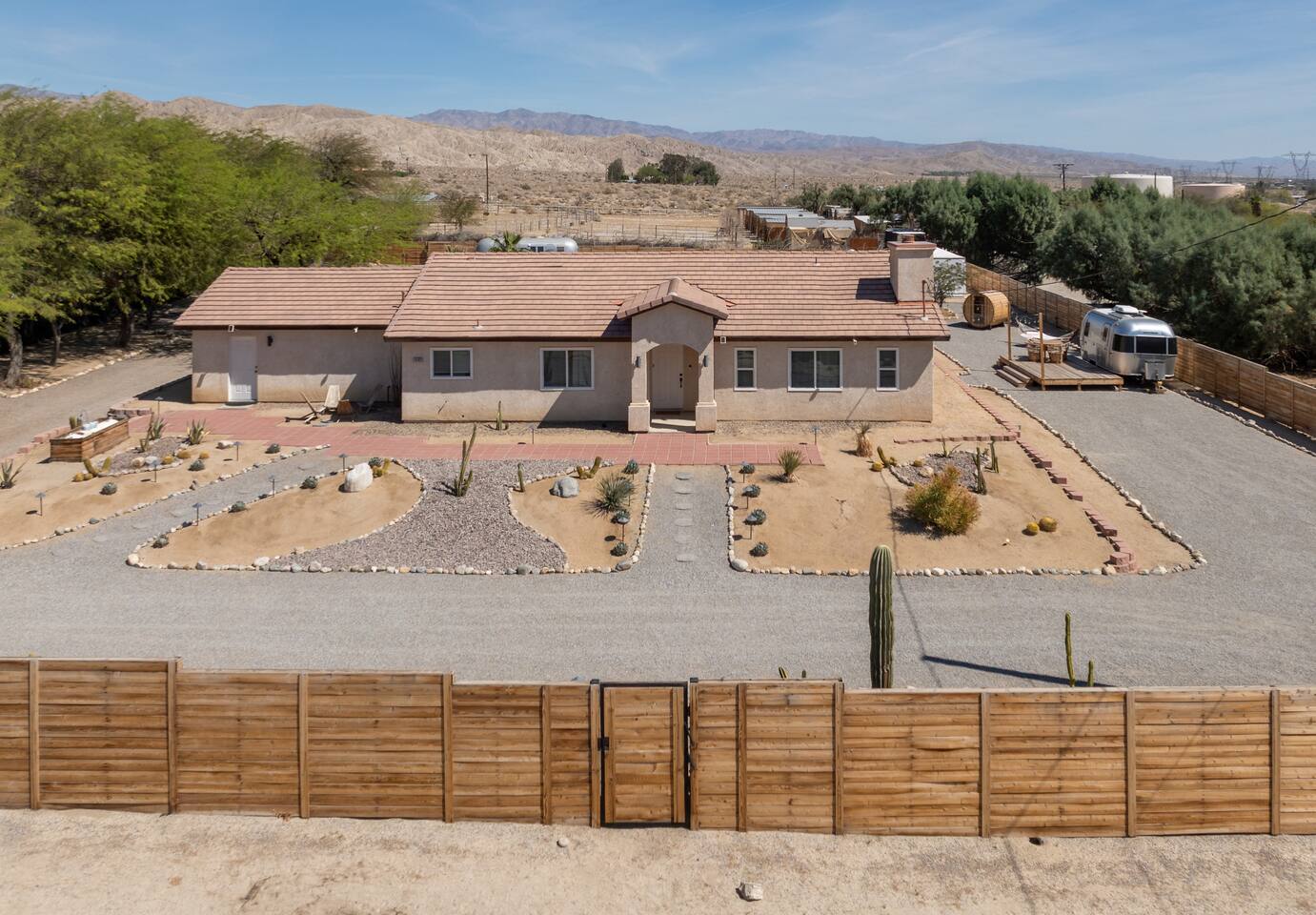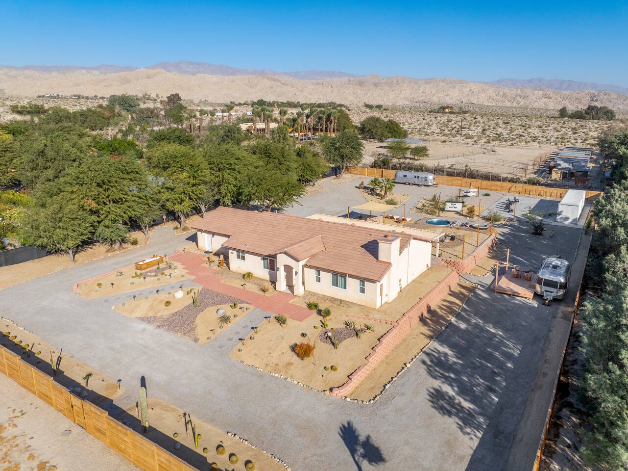 ◦ EARLY CHECK IN & LATE CHECK OUT Stand check in is 3pm and standard check out is 10am. If you're interested in an early arrival/late departure, please message your host about availability. They can be added for an additional fee $95 each if available. PETS: -We allow up to 3 pets onsite with a fee of $85 per pet. ◦ PHOTOSHOOTS If you're interested in having a photoshoot please let us know. There are additional fees and considerations. ◦ SPECIAL EVENTS If you're interested in having a special event please let us know we can try accommodate but ask for separate event insurance to be added and there are additional event fees and considerations like local rules. ◦ DESERT ROAD To access this home you'll need to travel for .5 miles on a dirt road. This road is easily accessible by standard cars and regularly has free flowing traffic from residents. Once you arrive to property there is gravel driveways around the whole property. ◦ DESERT CRITTERS The surrounding outdoor areas are common to have some visits from desert bugs and animals in their natural habitat. Please be aware the potential presence of Jackrabbits, Lizards, Snakes, Beetles, Flies, Grasshoppers, Spiders and Scorpions. The house is regularly fumigated inside and out monthly. In the case you run into any of the above you can contact us for assistance. ◦ PROPANE GAS & SEPTIC TANK The home is on its own gas and sewage system. Please be conscious of use of gas and sewage(Please ONLY use provided toilet paper and do not flush any other products aside from toilet paper) ◦ AIRSTREAM The airstream bambi shown in pictures 53-58 is accessible and can sleep two guests in a full sized bed. It is powered by solar and propane. Do note that there is not full power to fridge and microwave and ask that guest use the main kitchen. There is a full bathroom but ask that our guest follow the displayed instructions when using the shower and toilets. Please inquire in advance as we want our/your guests staying in this space to feel comfortable.