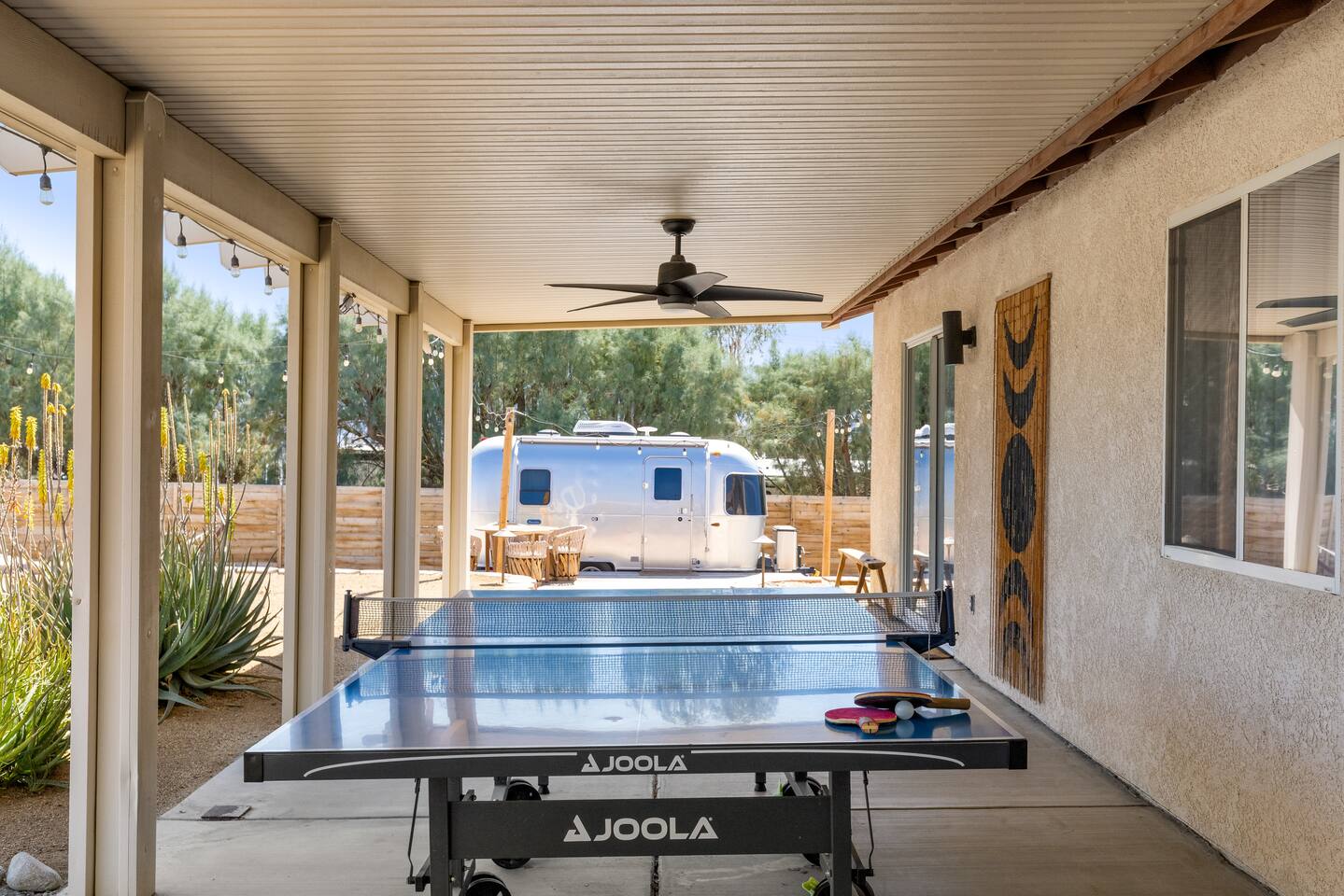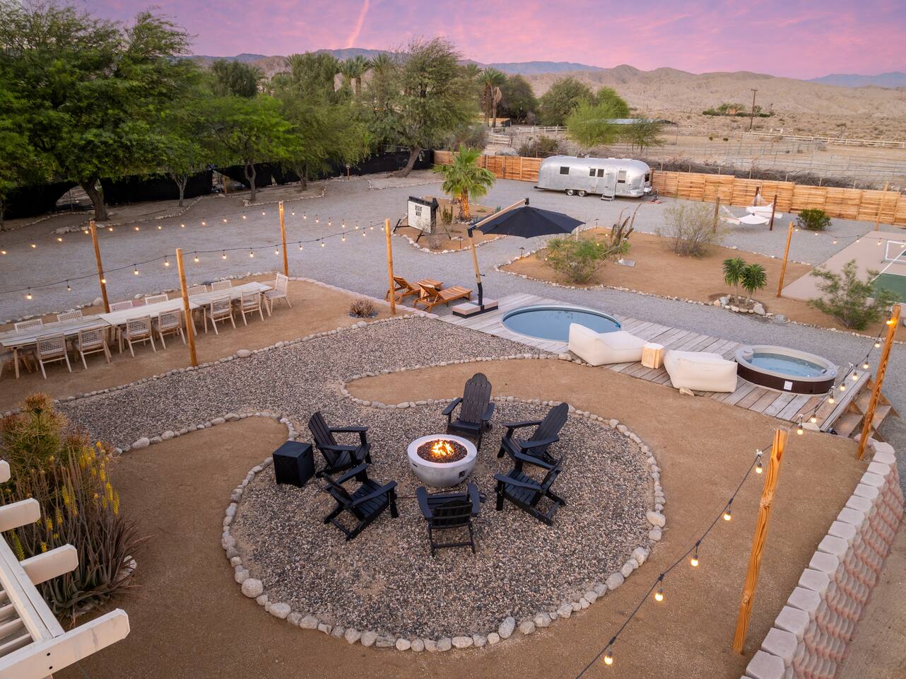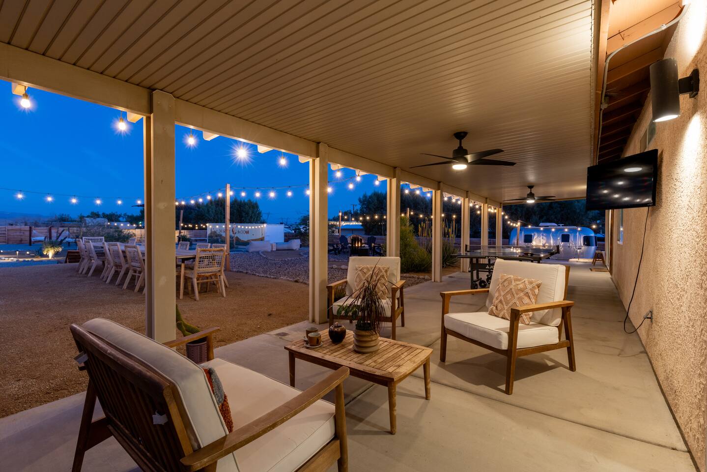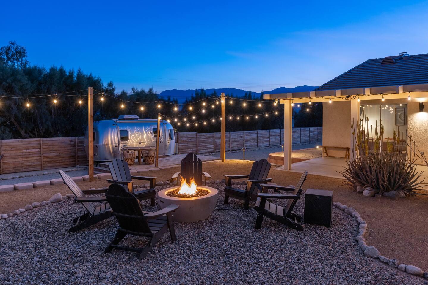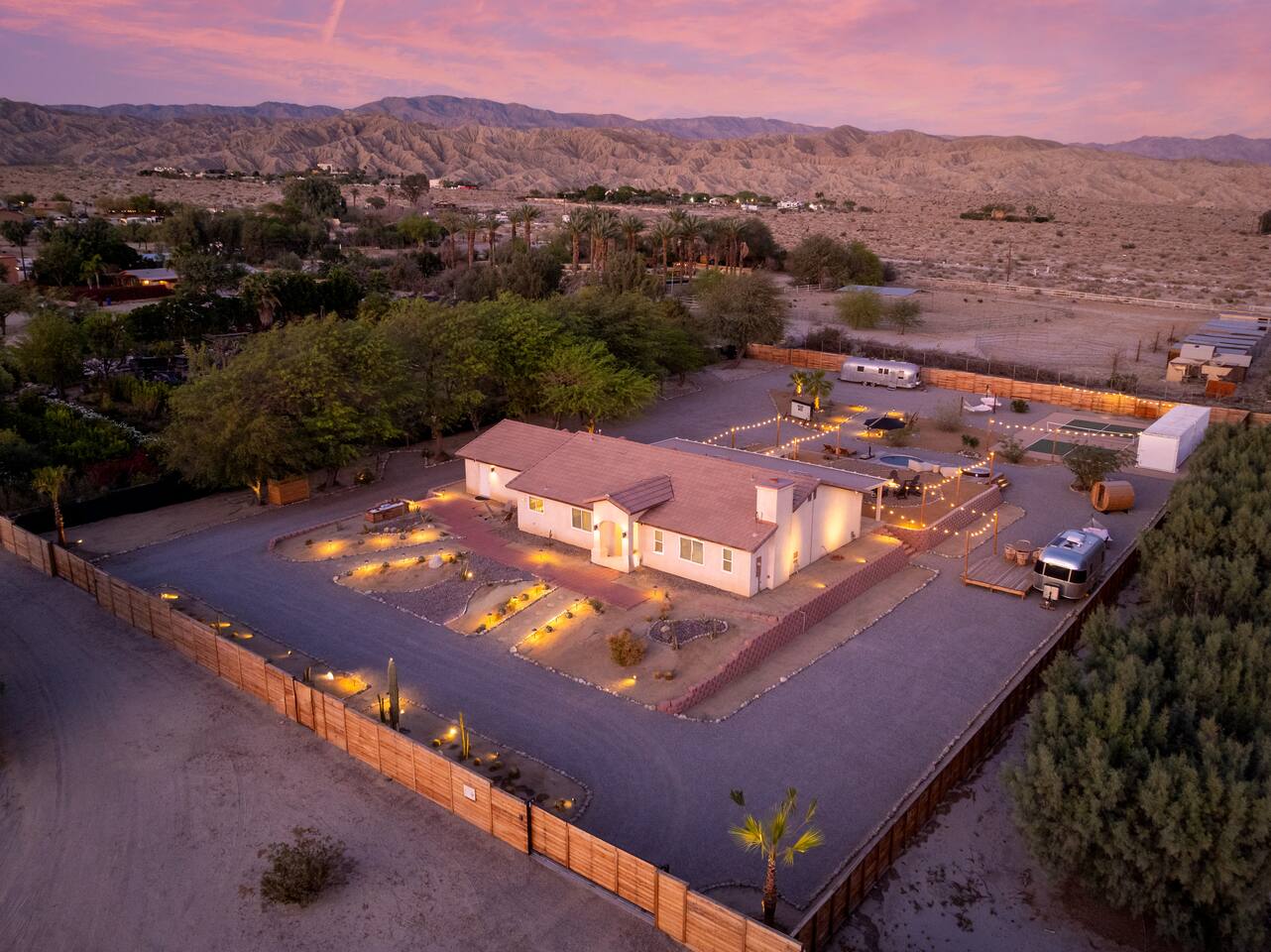 ◦ EARLY CHECK IN & LATE CHECK OUT Stand check in is 3pm and standard check out is 10am. If you're interested in an early arrival/late departure, please message your host about availability. They can be added for an additional fee $95 each if available. PETS: -We allow up to 3 pets onsite with a fee of $85 per pet. ◦ PHOTOSHOOTS If you're interested in having a photoshoot please let us know. There are additional fees and considerations. ◦ SPECIAL EVENTS If you're interested in having a special event please let us know we can try accommodate but ask for separate event insurance to be added and there are additional event fees and considerations like local rules. ◦ DESERT ROAD To access this home you'll need to travel for .5 miles on a dirt road. This road is easily accessible by standard cars and regularly has free flowing traffic from residents. Once you arrive to property there is gravel driveways around the whole property. ◦ DESERT CRITTERS The surrounding outdoor areas are common to have some visits from desert bugs and animals in their natural habitat. Please be aware the potential presence of Jackrabbits, Lizards, Snakes, Beetles, Flies, Grasshoppers, Spiders and Scorpions. The house is regularly fumigated inside and out monthly. In the case you run into any of the above you can contact us for assistance. ◦ PROPANE GAS & SEPTIC TANK The home is on its own gas and sewage system. Please be conscious of use of gas and sewage(Please ONLY use provided toilet paper and do not flush any other products aside from toilet paper) ◦ AIRSTREAM The airstream bambi shown in pictures 53-58 is accessible and can sleep two guests in a full sized bed. It is powered by solar and propane. Do note that there is not full power to fridge and microwave and ask that guest use the main kitchen. There is a full bathroom but ask that our guest follow the displayed instructions when using the shower and toilets. Please inquire in advance as we want our/your guests staying in this space to feel comfortable.