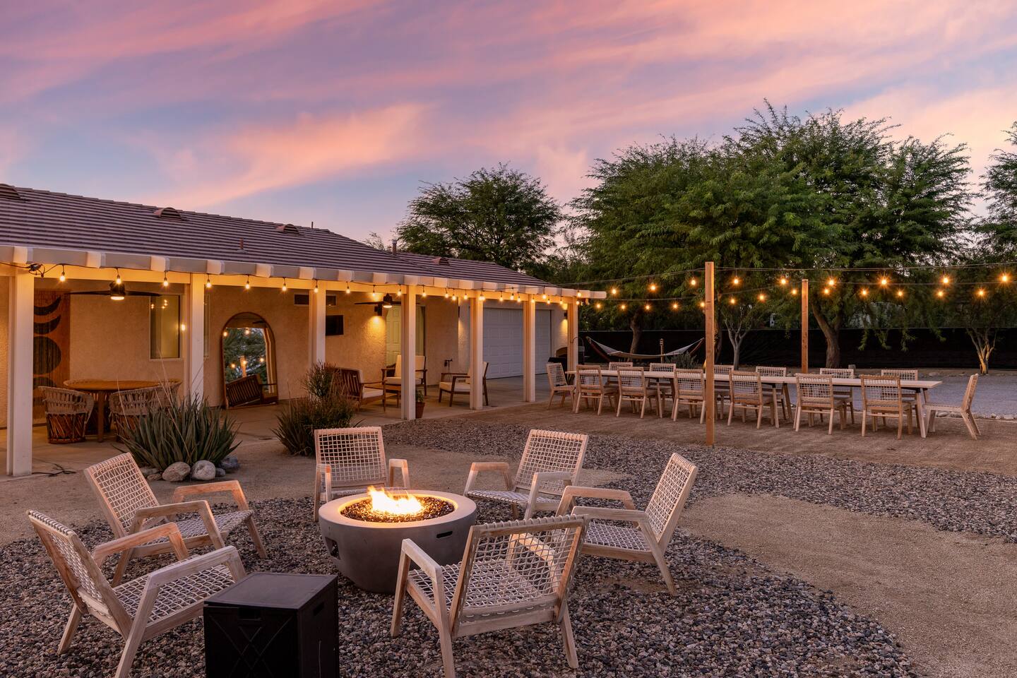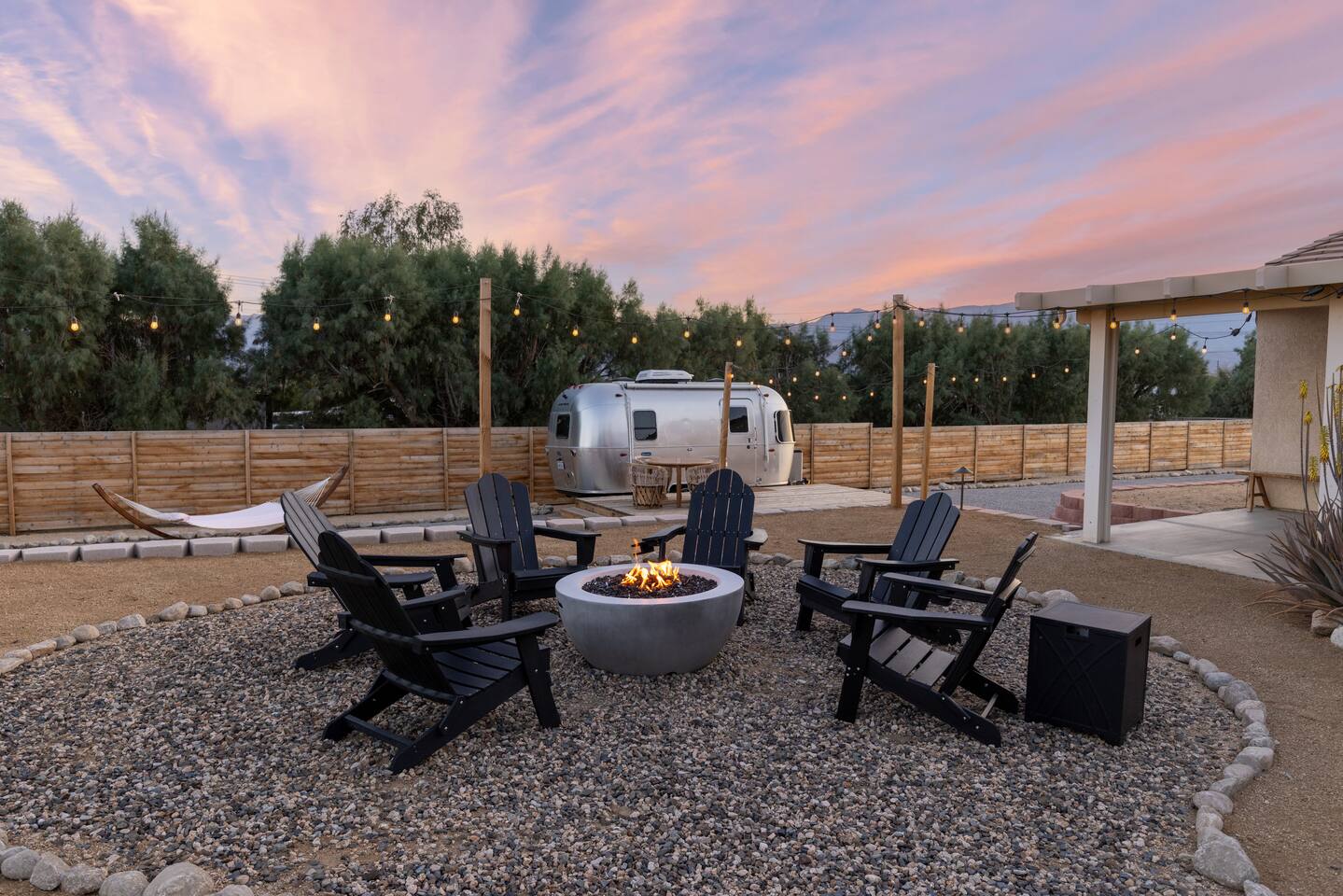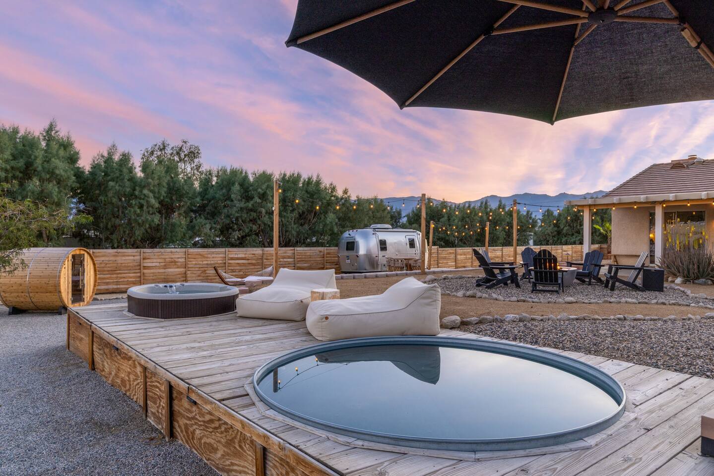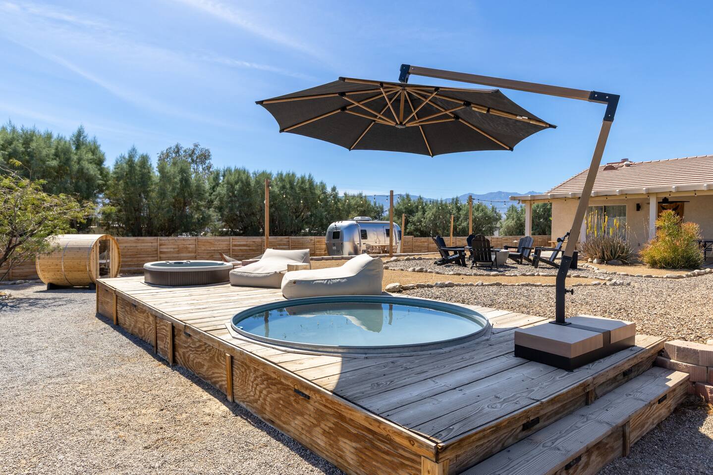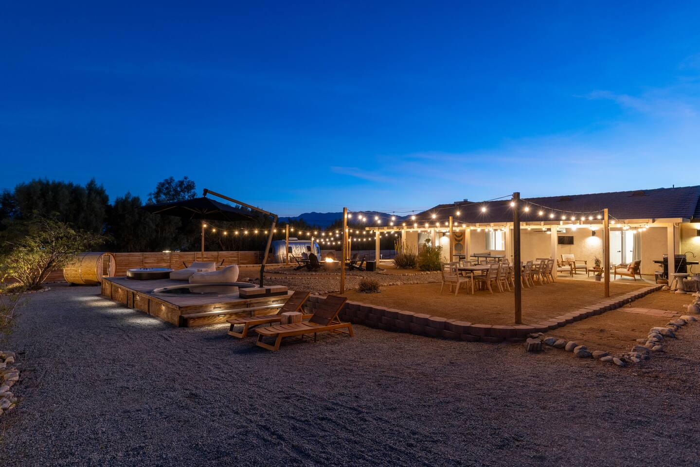 ◦ EARLY CHECK IN & LATE CHECK OUT Stand check in is 3pm and standard check out is 10am. If you're interested in an early arrival/late departure, please message your host about availability. They can be added for an additional fee $95 each if available. PETS: -We allow up to 3 pets onsite with a fee of $85 per pet. ◦ PHOTOSHOOTS If you're interested in having a photoshoot please let us know. There are additional fees and considerations. ◦ SPECIAL EVENTS If you're interested in having a special event please let us know we can try accommodate but ask for separate event insurance to be added and there are additional event fees and considerations like local rules. ◦ DESERT ROAD To access this home you'll need to travel for .5 miles on a dirt road. This road is easily accessible by standard cars and regularly has free flowing traffic from residents. Once you arrive to property there is gravel driveways around the whole property. ◦ DESERT CRITTERS The surrounding outdoor areas are common to have some visits from desert bugs and animals in their natural habitat. Please be aware the potential presence of Jackrabbits, Lizards, Snakes, Beetles, Flies, Grasshoppers, Spiders and Scorpions. The house is regularly fumigated inside and out monthly. In the case you run into any of the above you can contact us for assistance. ◦ PROPANE GAS & SEPTIC TANK The home is on its own gas and sewage system. Please be conscious of use of gas and sewage(Please ONLY use provided toilet paper and do not flush any other products aside from toilet paper) ◦ AIRSTREAM The airstream bambi shown in pictures 53-58 is accessible and can sleep two guests in a full sized bed. It is powered by solar and propane. Do note that there is not full power to fridge and microwave and ask that guest use the main kitchen. There is a full bathroom but ask that our guest follow the displayed instructions when using the shower and toilets. Please inquire in advance as we want our/your guests staying in this space to feel comfortable.