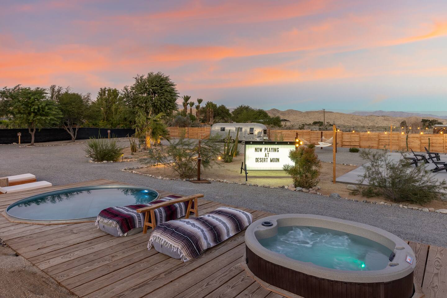 Desert Moon features all the unique amenities made popular in nearby Joshua Tree but within a 10 minute drive to the popular cities of Palm Springs or Palm Desert. Just off the beaten path from the highway, when your group arrives you'll have 1 acre of privacy to experience your desert dreams. Soak in the 10ft cowboy pool or relax in the Hot Tub under the stars. The inside has been designed by an Airbnb Plus team and equipped for comfort. RIverside County Permit: RVC-1300