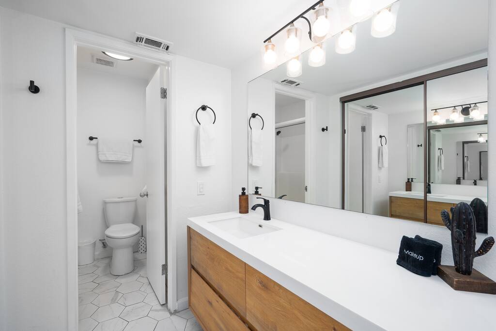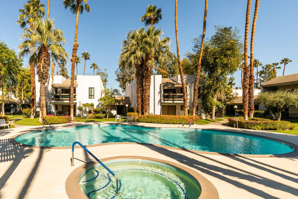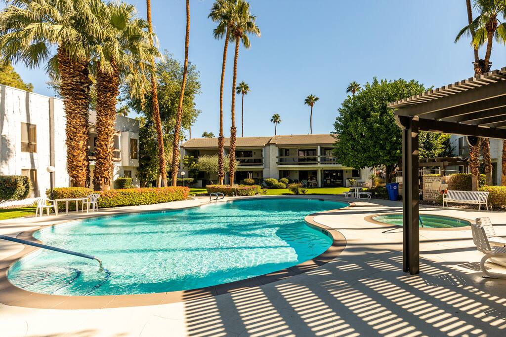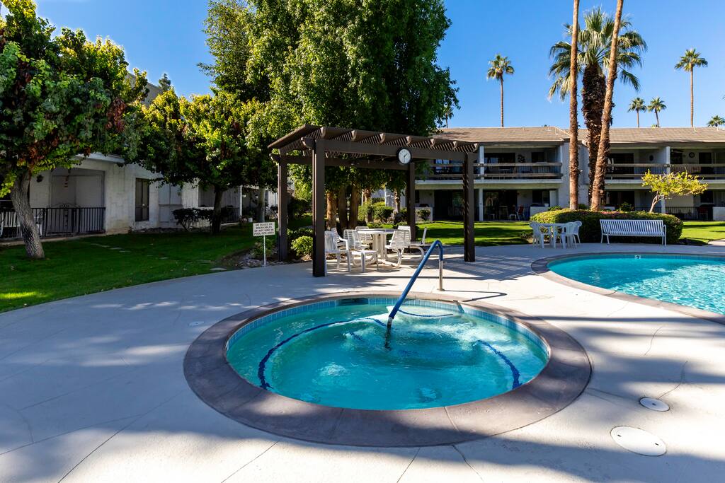 This corner unit ensures your privacy, thanks to an enclosed patio and plantation shutters throughout. It's thoughtfully positioned away from the main street, offering a tranquil retreat. Conveniently located just 10 minutes from the airport and a mere 15-minute drive from downtown Palm Springs. Our prime location ensures effortless access to the area's many attractions. There are a total of 3 pools available for our guest's enjoyment. The pools are heated from November to April and the spa all year round After booking, please take a moment to review the Palm Springs vacation rental information.