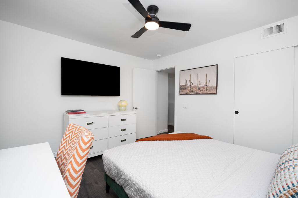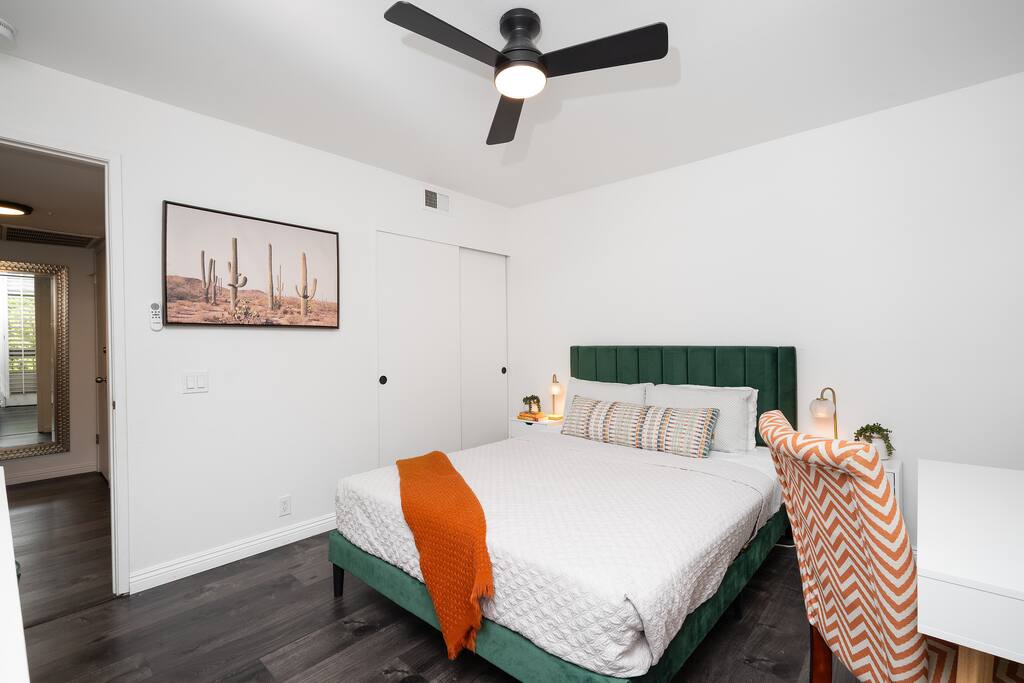 T.O.T. #3644 Find comfort and convenience in our 2nd-floor corner unit at Palm Canyon Villas. Our spacious floor plan and fully equipped kitchen will make you feel right at home. The primary room offers a king bed and a private bathroom, while the guest room has a queen bed and a designated workspace. Stay connected with high speed internet, perfect for remote work or streaming. Step outside for a short stroll to our beautiful community pool and spa. We provide floaties for your enjoyment.
