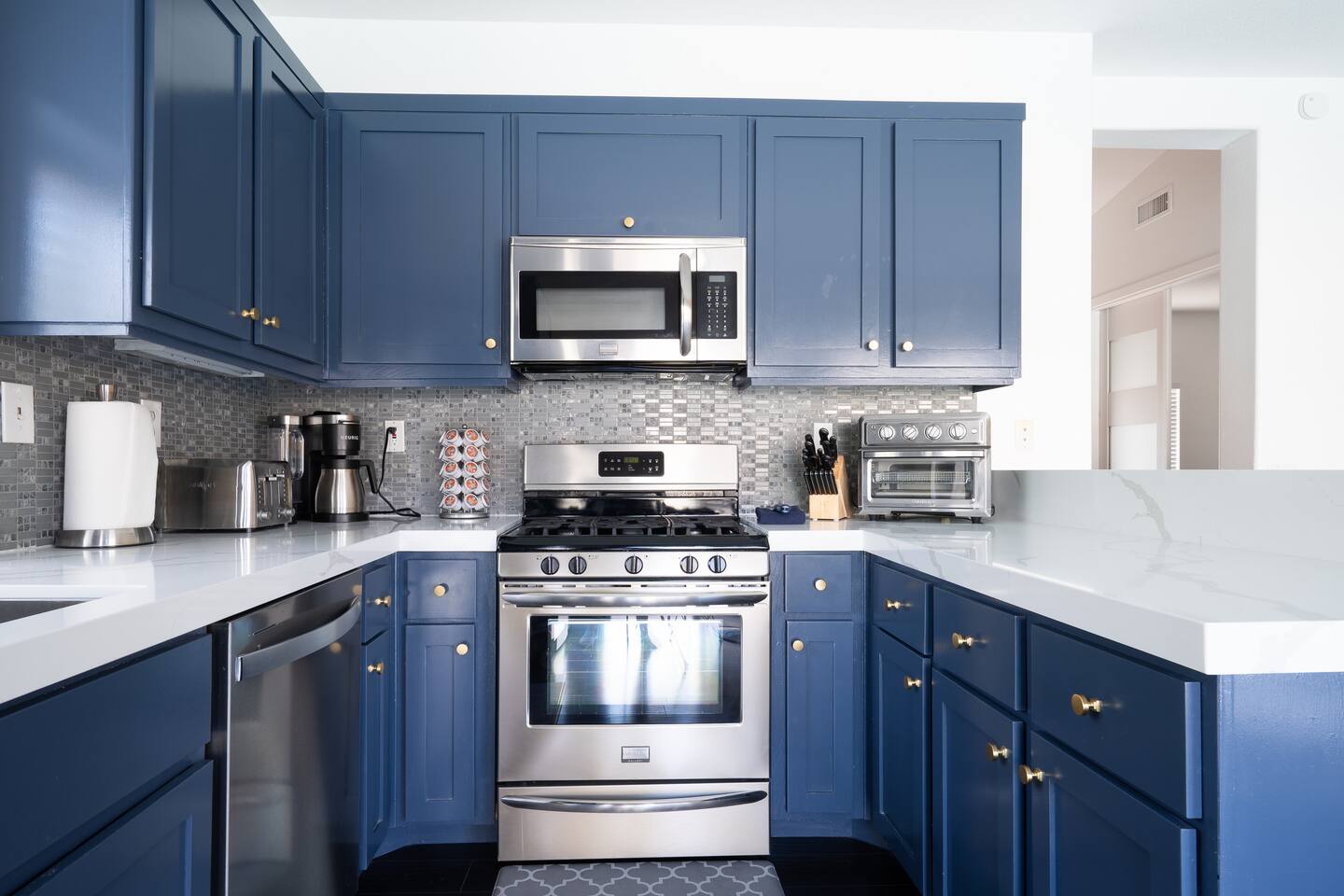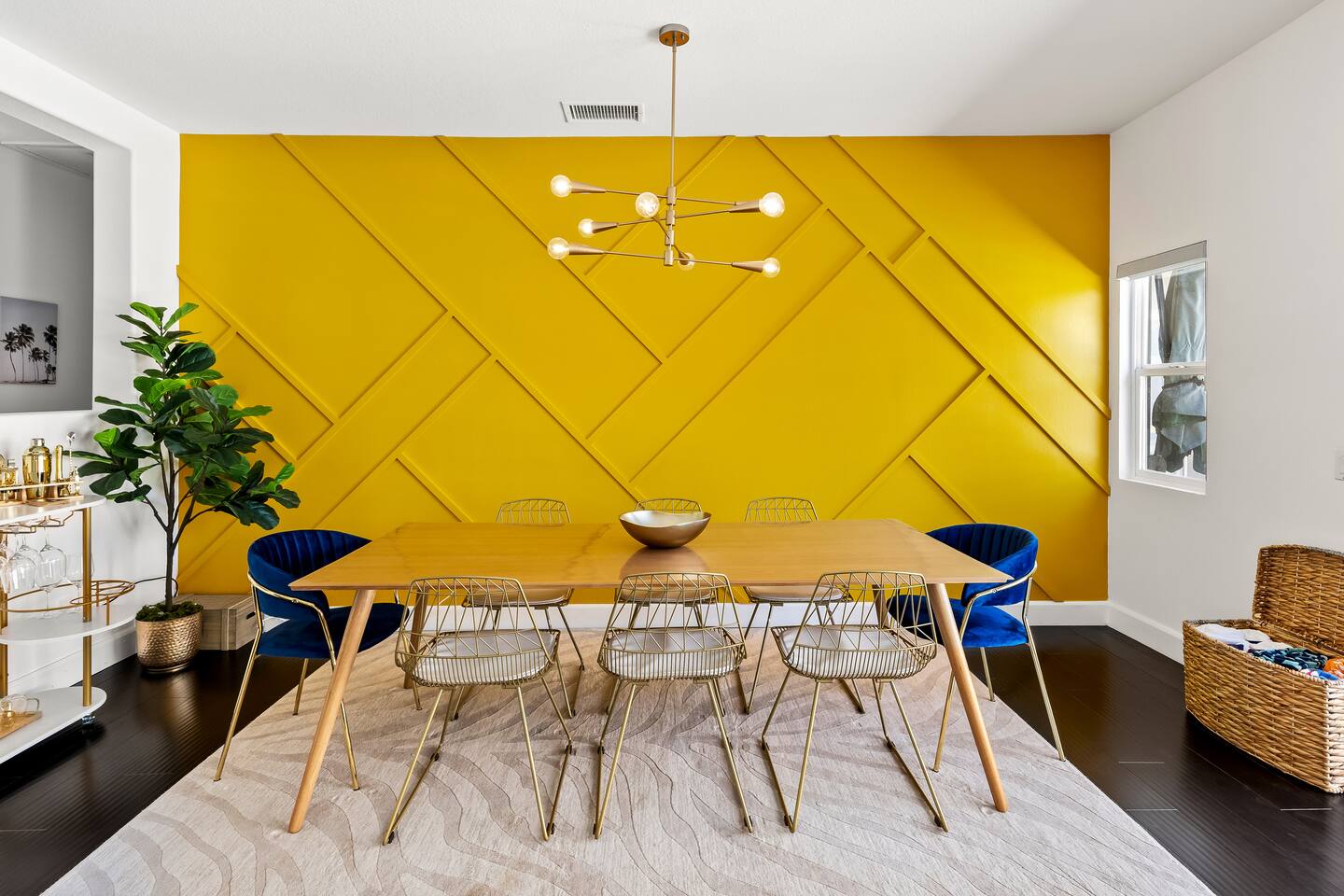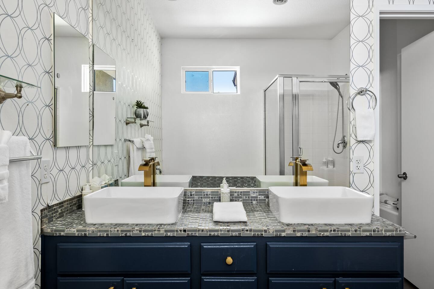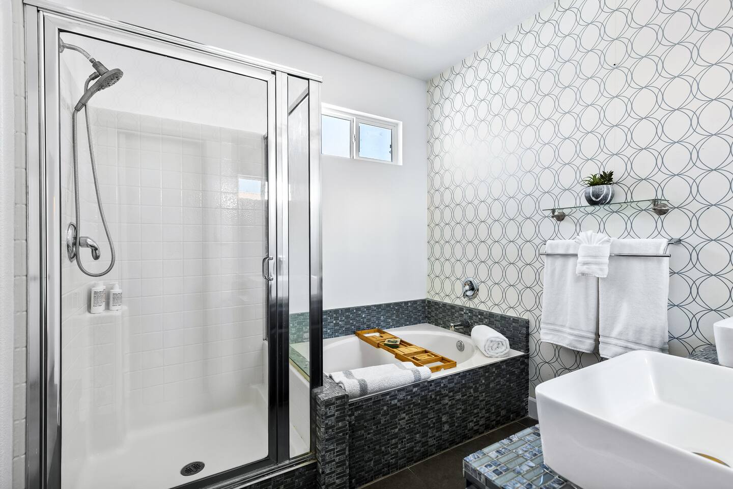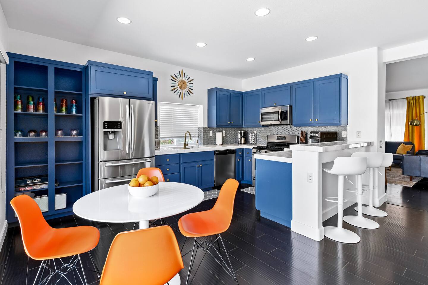This is 4BD, 2BA home is ready for your group! Your group will enjoy the open layout of a spacious living room w/ gas fireplace and large Smart TV above. Also available is a dedicated desk with a monitor, this space is perfect for those needing to WFH. Our dining room table has seating for 8 and a bar cart nearby to mix cocktails/mocktails for your group. There is additional kitchen bar seating with 3 stools and a round mid century tulip breakfast table that seats 4. All seating overlooks the beautiful backyard pool. The Kitchen is fully stocked with all the tools and appliances you will need to prepare meals. Lastly, Head out back to the spacious and private backyard where you'll find your sparkling pool and hot tub. There are lounge chairs and two seperate seating areas with outdoor couches and fire pit(propane)or the outdoor table with string lighting that seats 8. Our gas BBQ is located on the side of the house. Our garage fits 2 vehicles and up to 4 in the driveway. This is a great home whether you're hosting a family outing, bachelorette party, or just a get-together with some close friends.