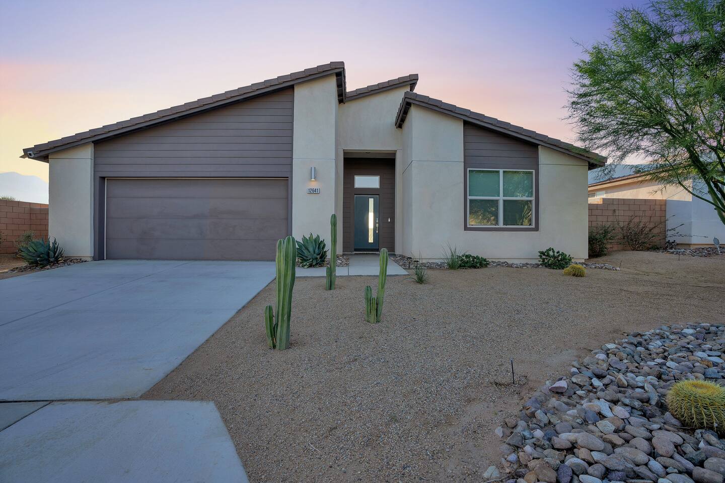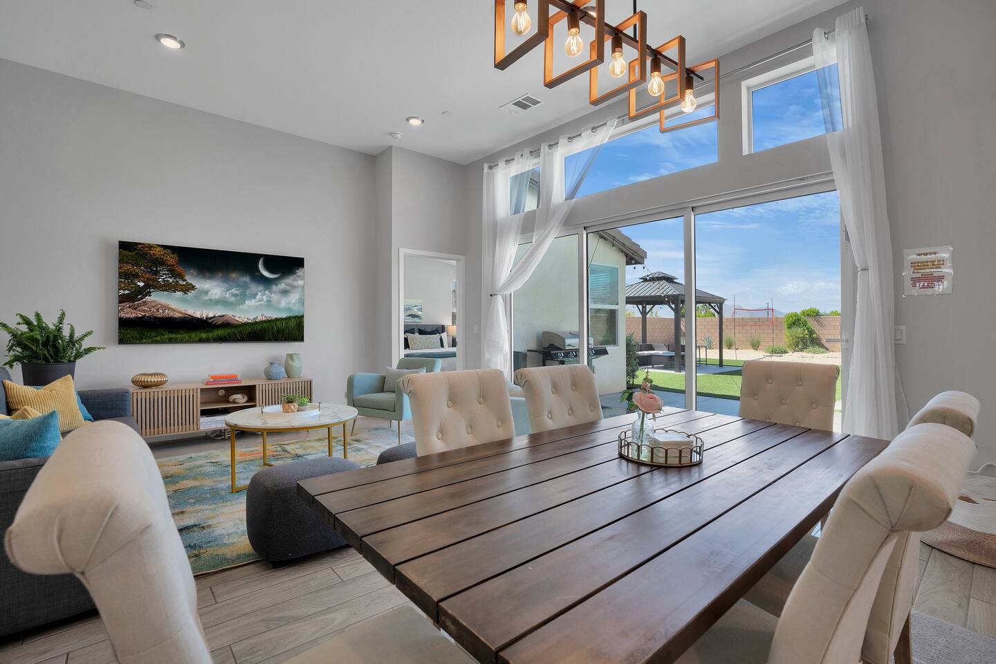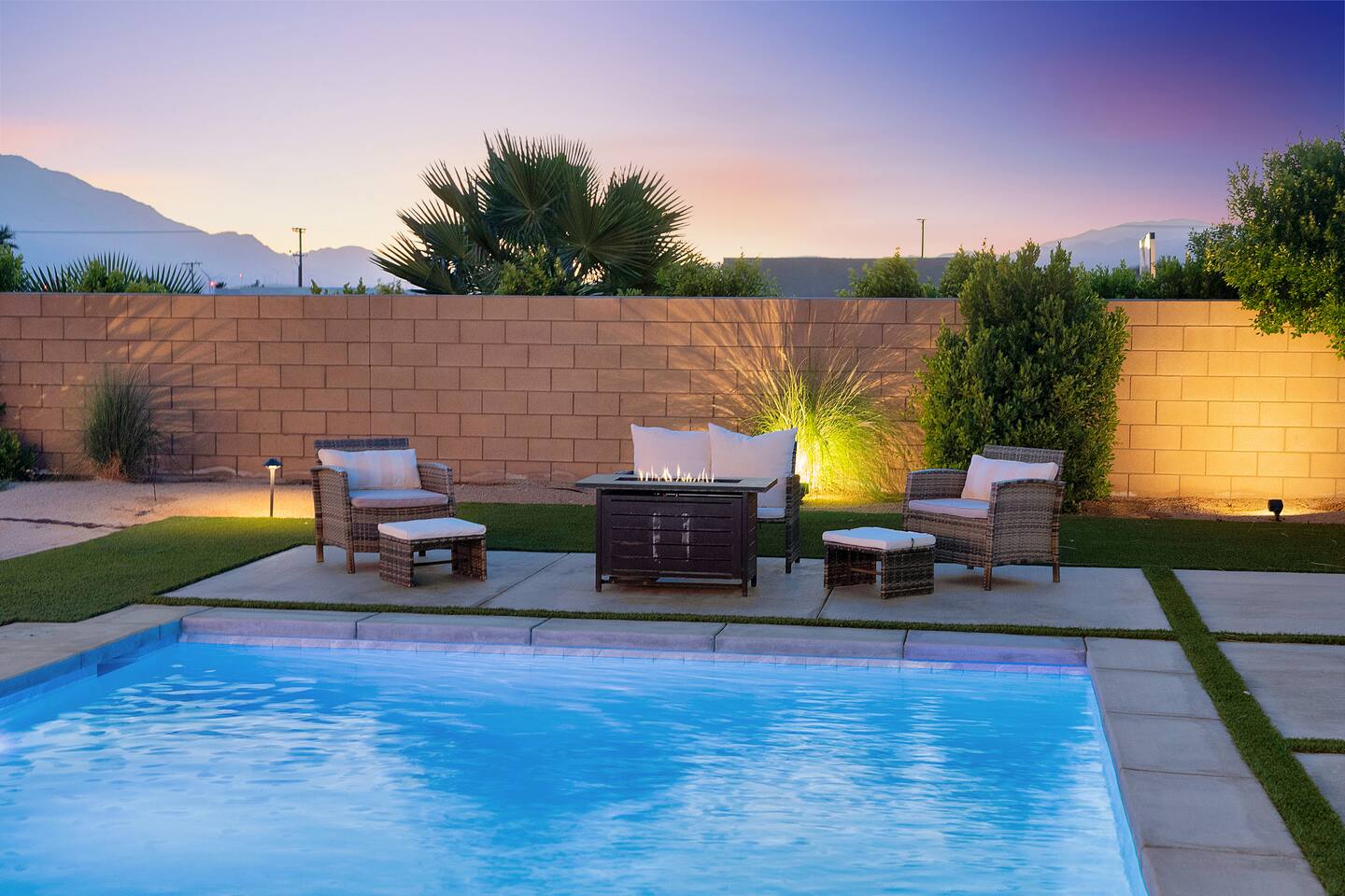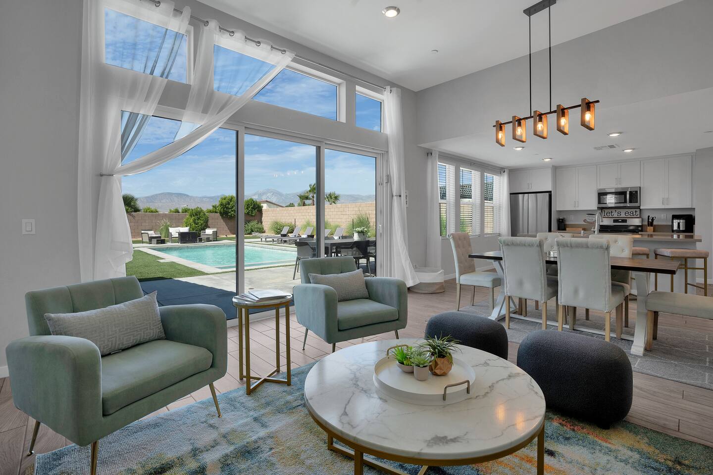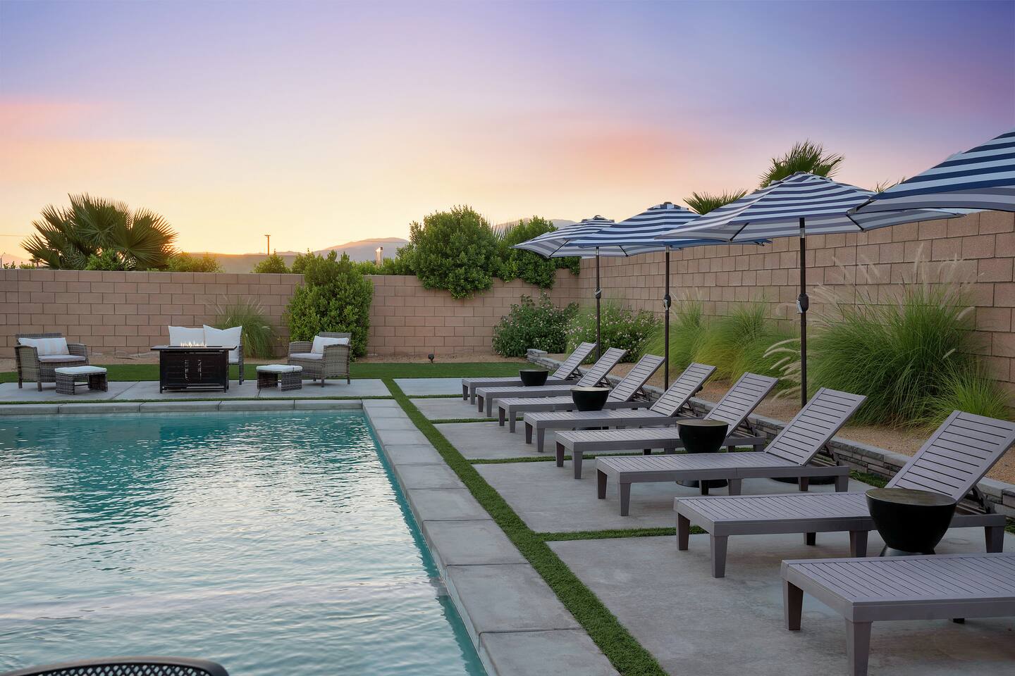 Enjoy a fun, desert living experience at this centrally located gorgeous home. Conveniently located a short 15 min drive from Palm Springs (PSP) airport and downtown Palm Springs. This brand new construction, 3 bdr home is the perfect spot to come enjoy your next vacation. Tastefully decorated, new comfortable furniture, the huge backyard with expansive pool/8 person spa and sand Volleyball court will be sure to keep you & your guests entertained!