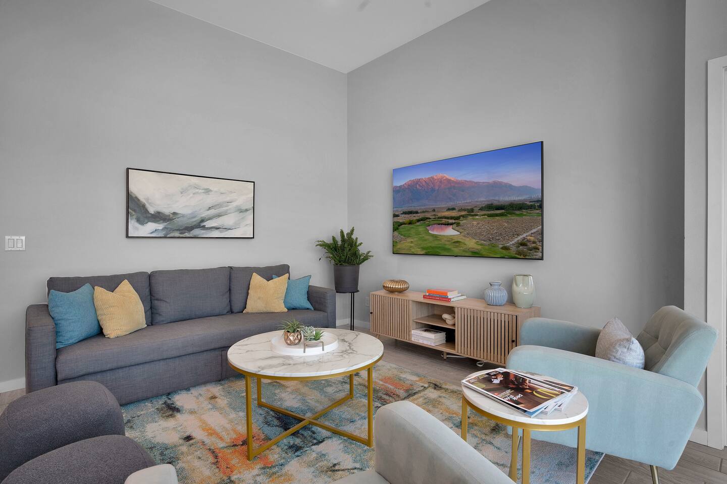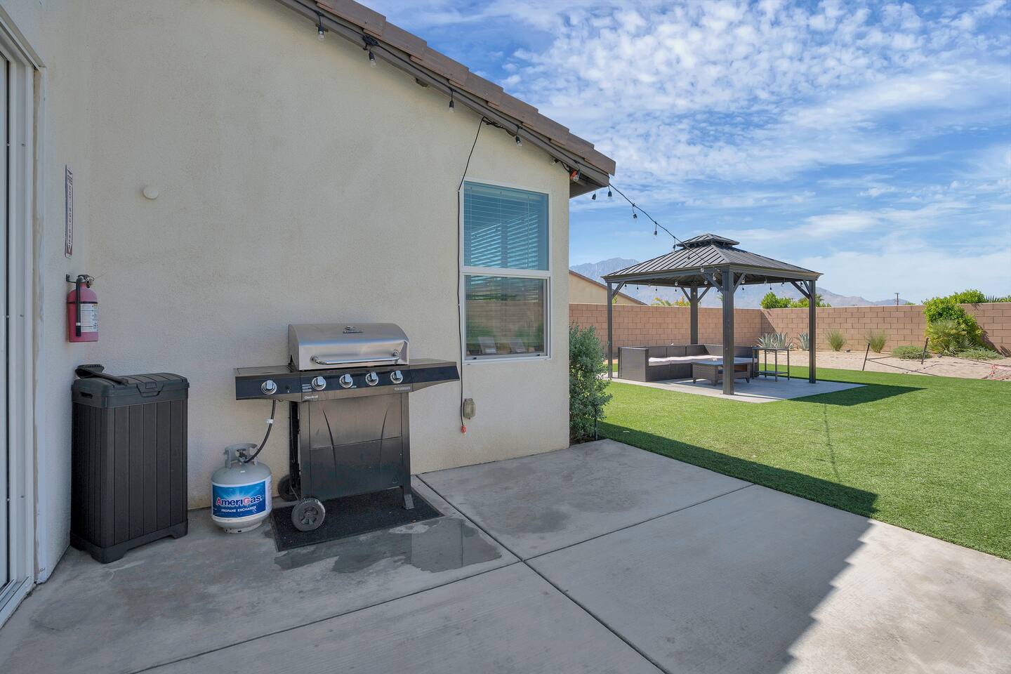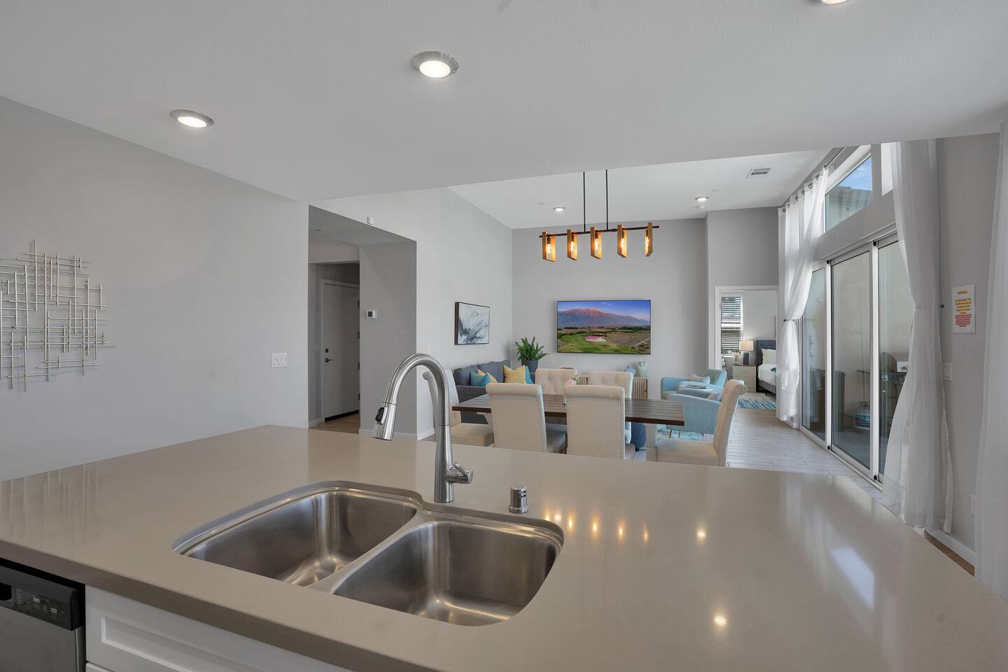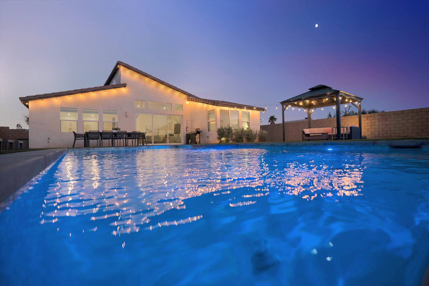 Enjoy a fun, desert living experience at this centrally located gorgeous home. Conveniently located a short 15 min drive from Palm Springs (PSP) airport and downtown Palm Springs. This brand new construction, 3 bdr home is the perfect spot to come enjoy your next vacation. Tastefully decorated, new comfortable furniture, the huge backyard with expansive pool/8 person spa and sand Volleyball court will be sure to keep you & your guests entertained!