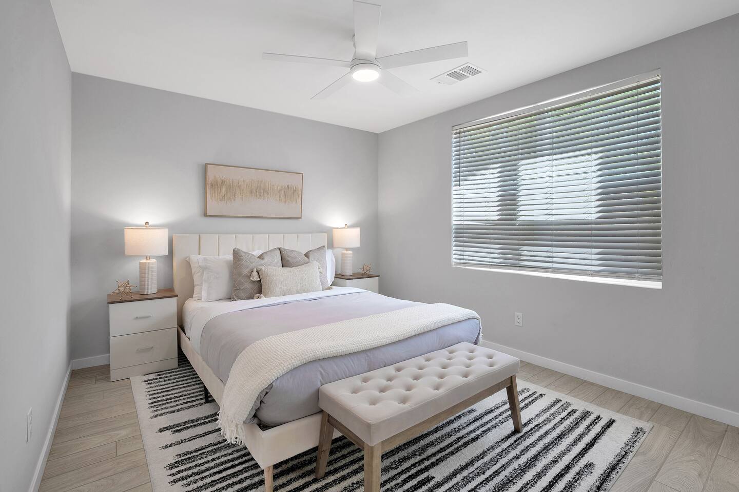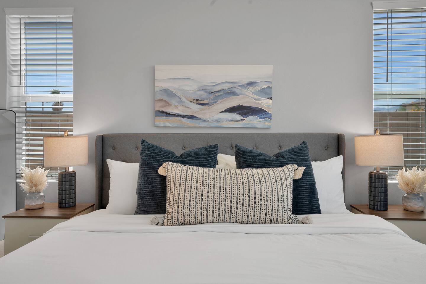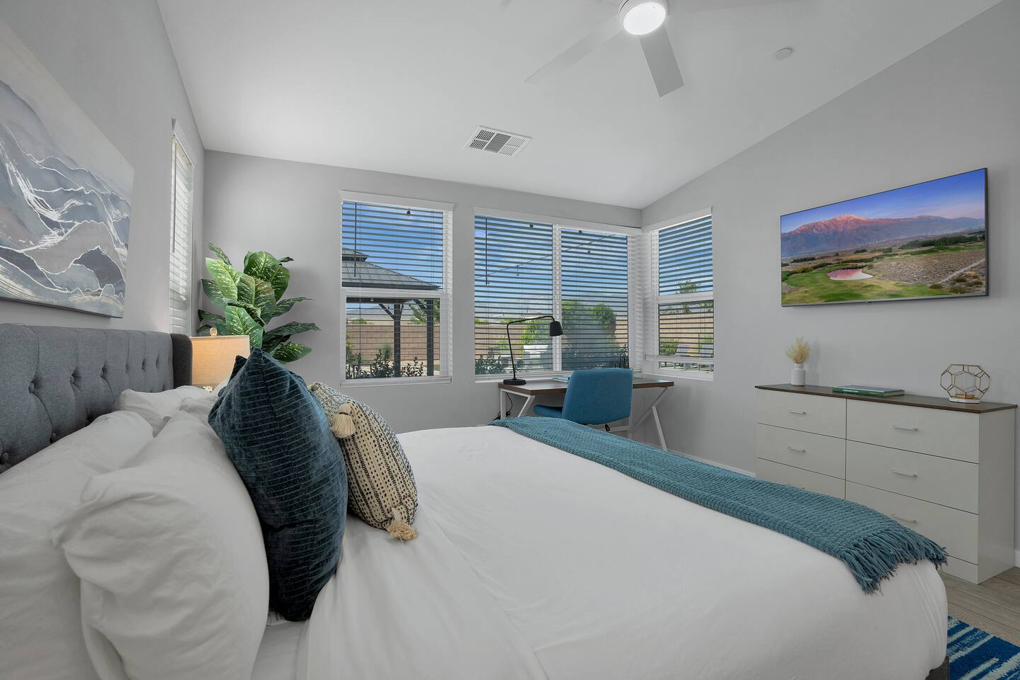 #1 - Master Bedroom - King bed with ensuite Master bathroom and walk in closet. #2 - Guest Bedroom - Queen bed, share nearby hall bathroom #3 - Guest Bedroom- Queen bed, share nearby hall bathroom