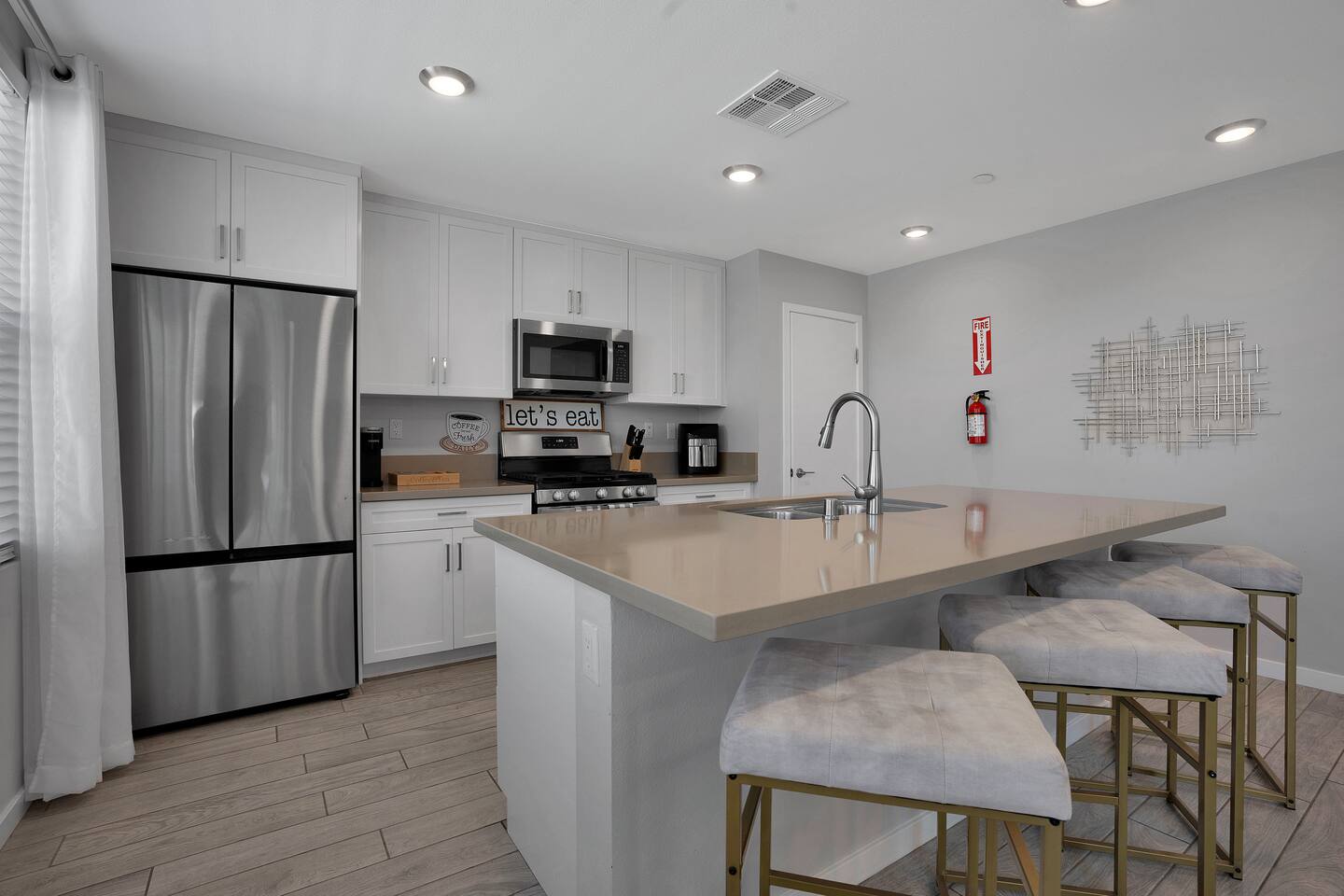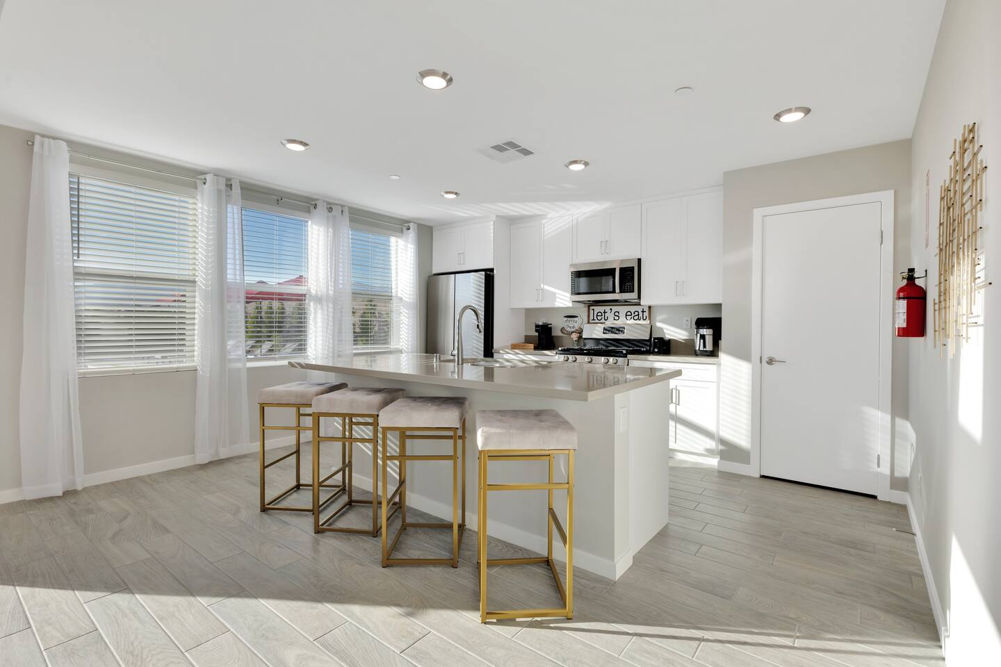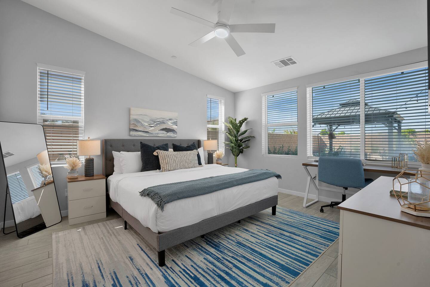 #1 - Master Bedroom - King bed with ensuite Master bathroom and walk in closet. #2 - Guest Bedroom - Queen bed, share nearby hall bathroom #3 - Guest Bedroom- Queen bed, share nearby hall bathroom